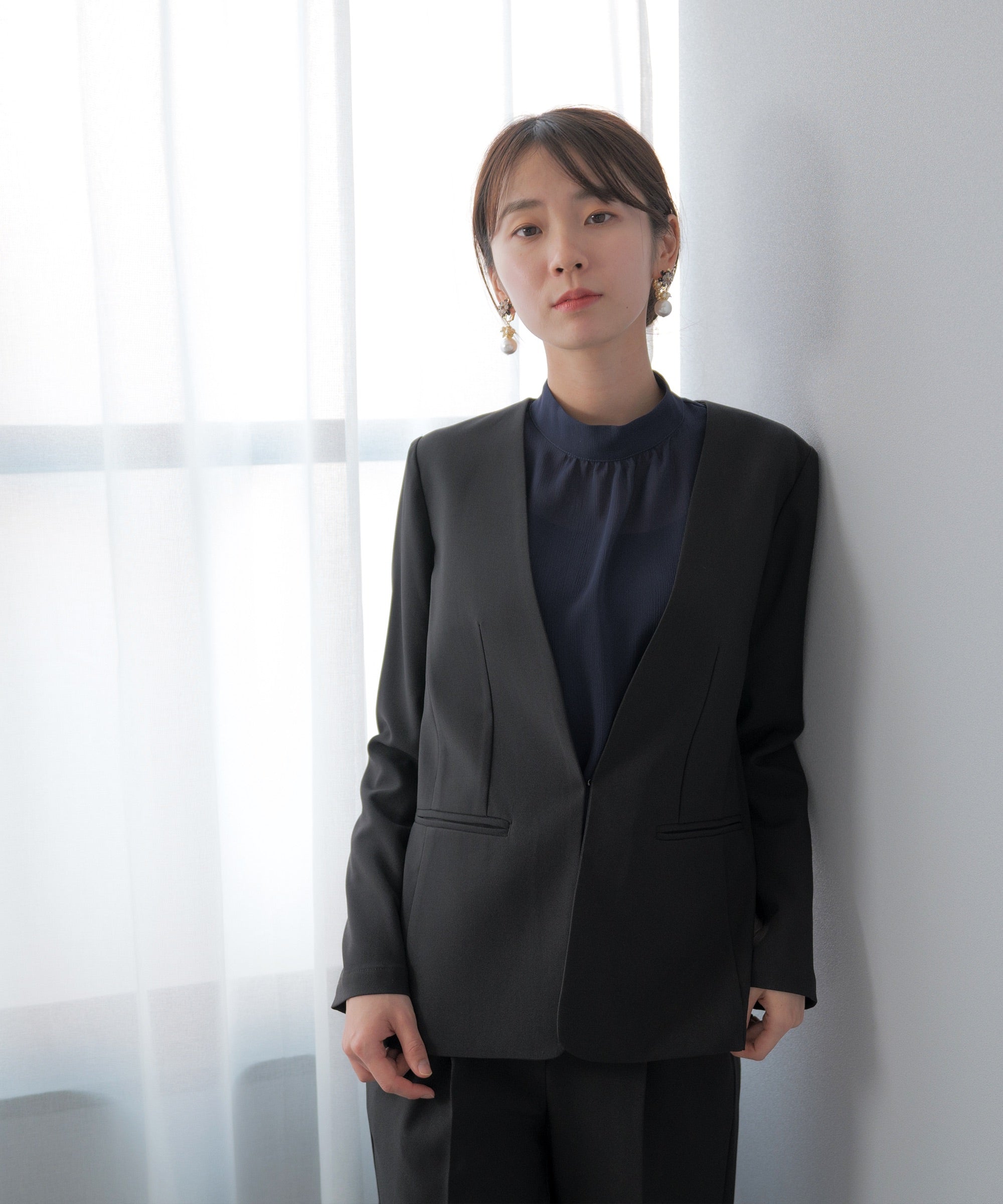 [festinalente]洗える × 防シワ ノーカラー セミワイド セットアップ