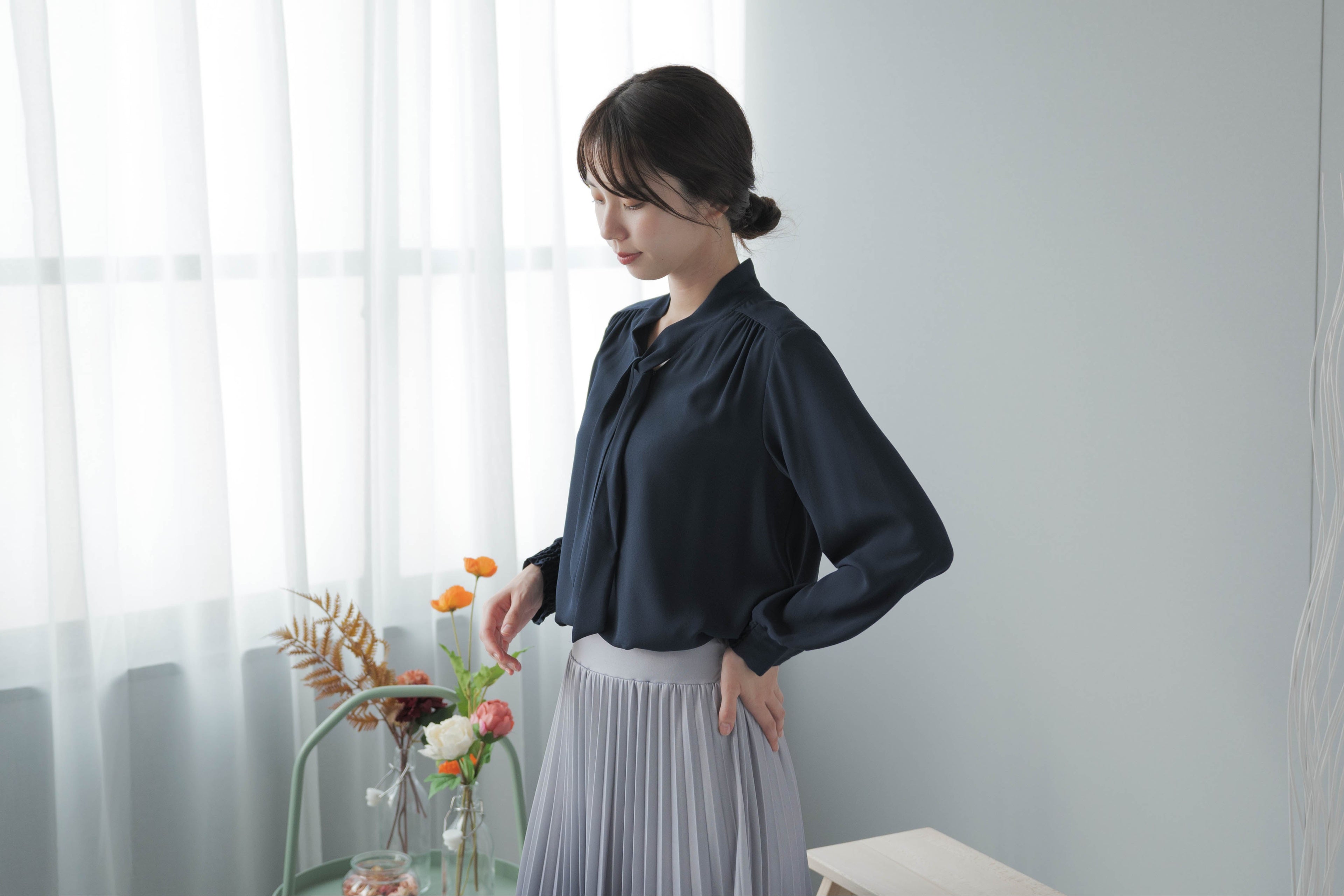 [Festinalente] シャーリングカフス ボウタイブラウス