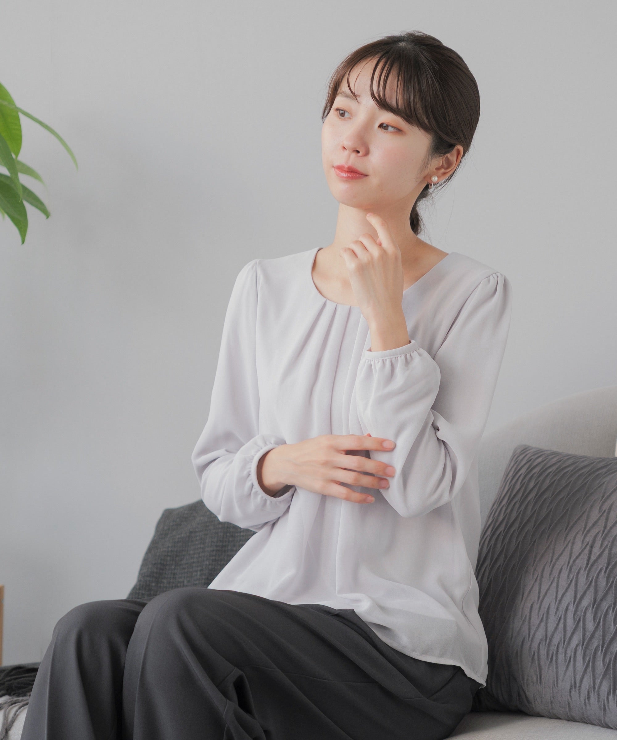 [Festinalente] 裏起毛 長袖 タックブラウス