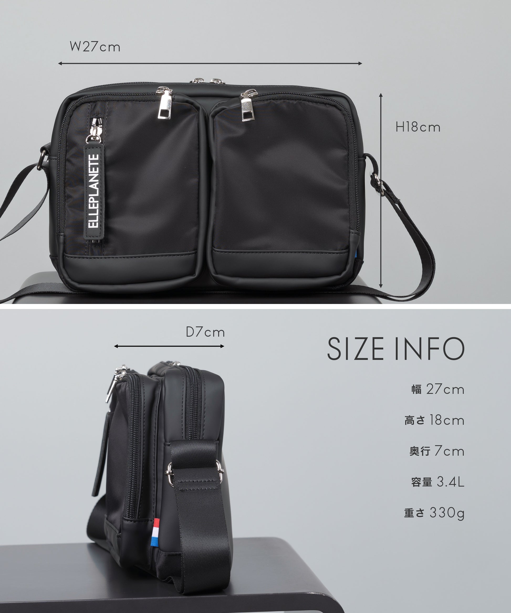 【商品詳細】・左右どちらにも開くメインルームのダブルファスナー・ブロンドロゴ入りのファスナータグ・長さが調整でき、丈夫で高級感のあるナイロンベルト・バッグの端には程よく入るトリコロールタグ【商品サイズ】幅 27cm高さ 18cm奥行 7cm容量 3.4L重さ 330g