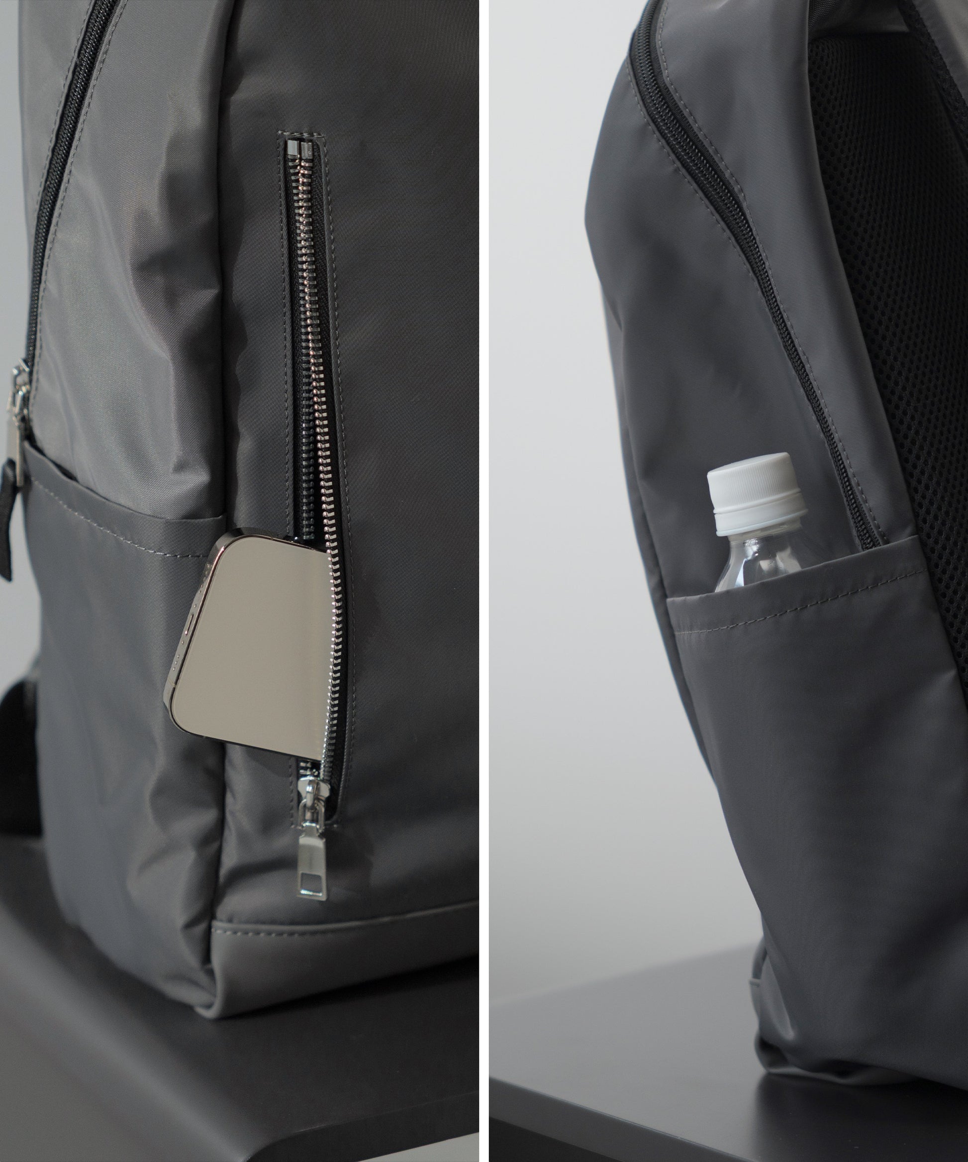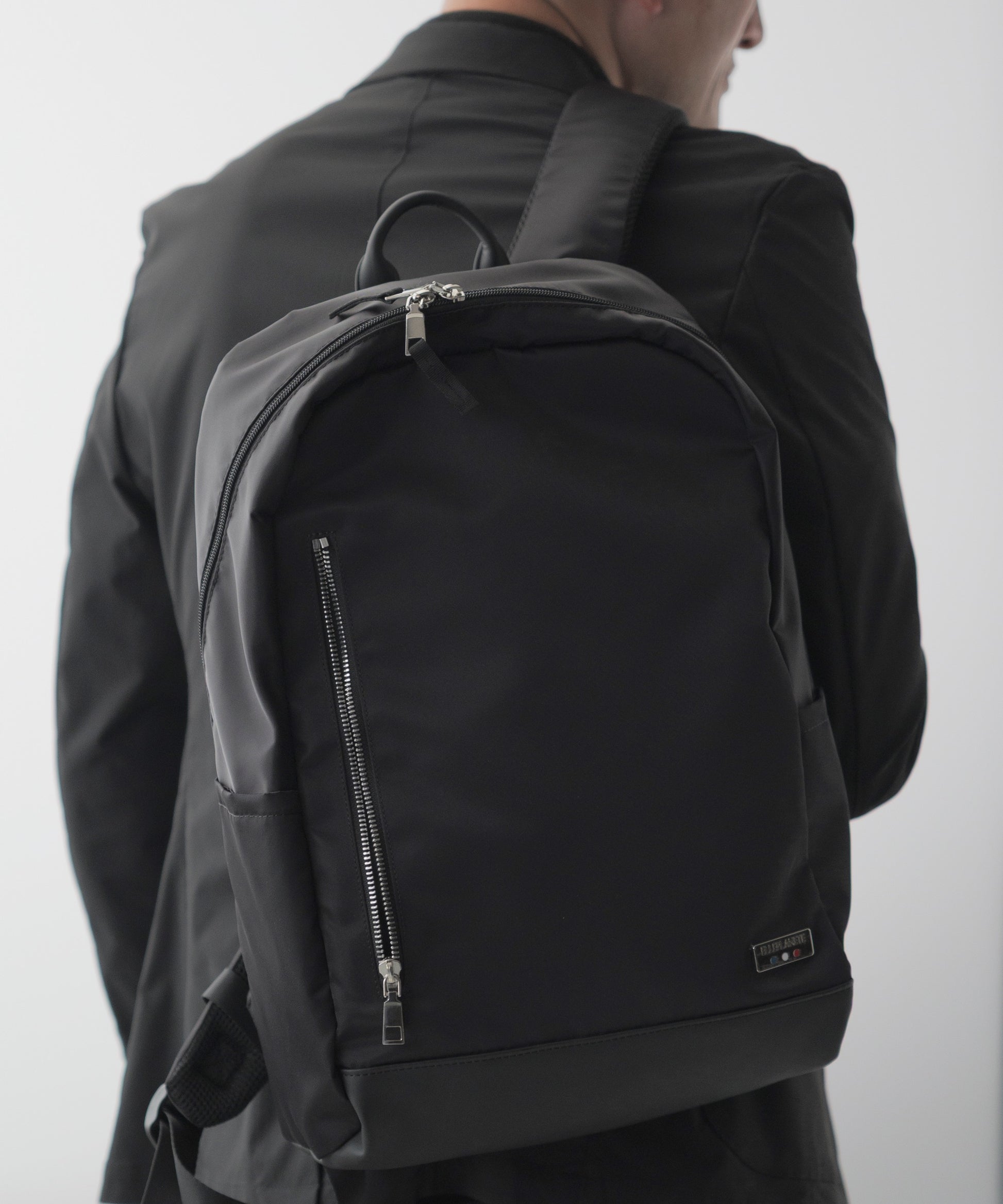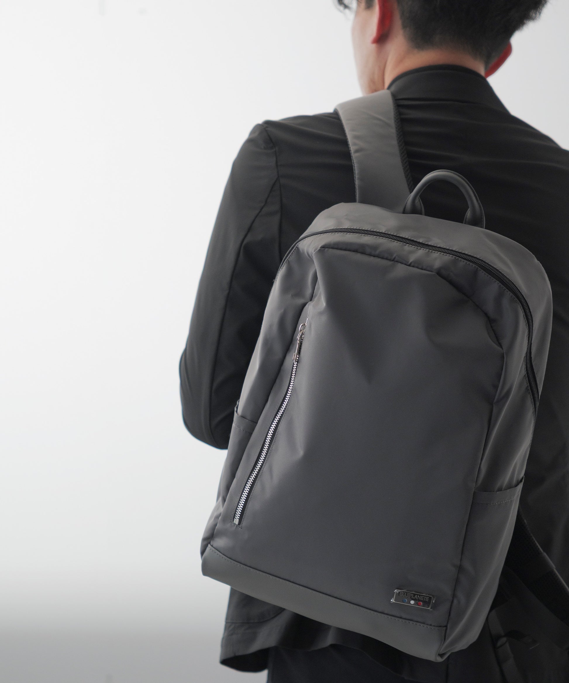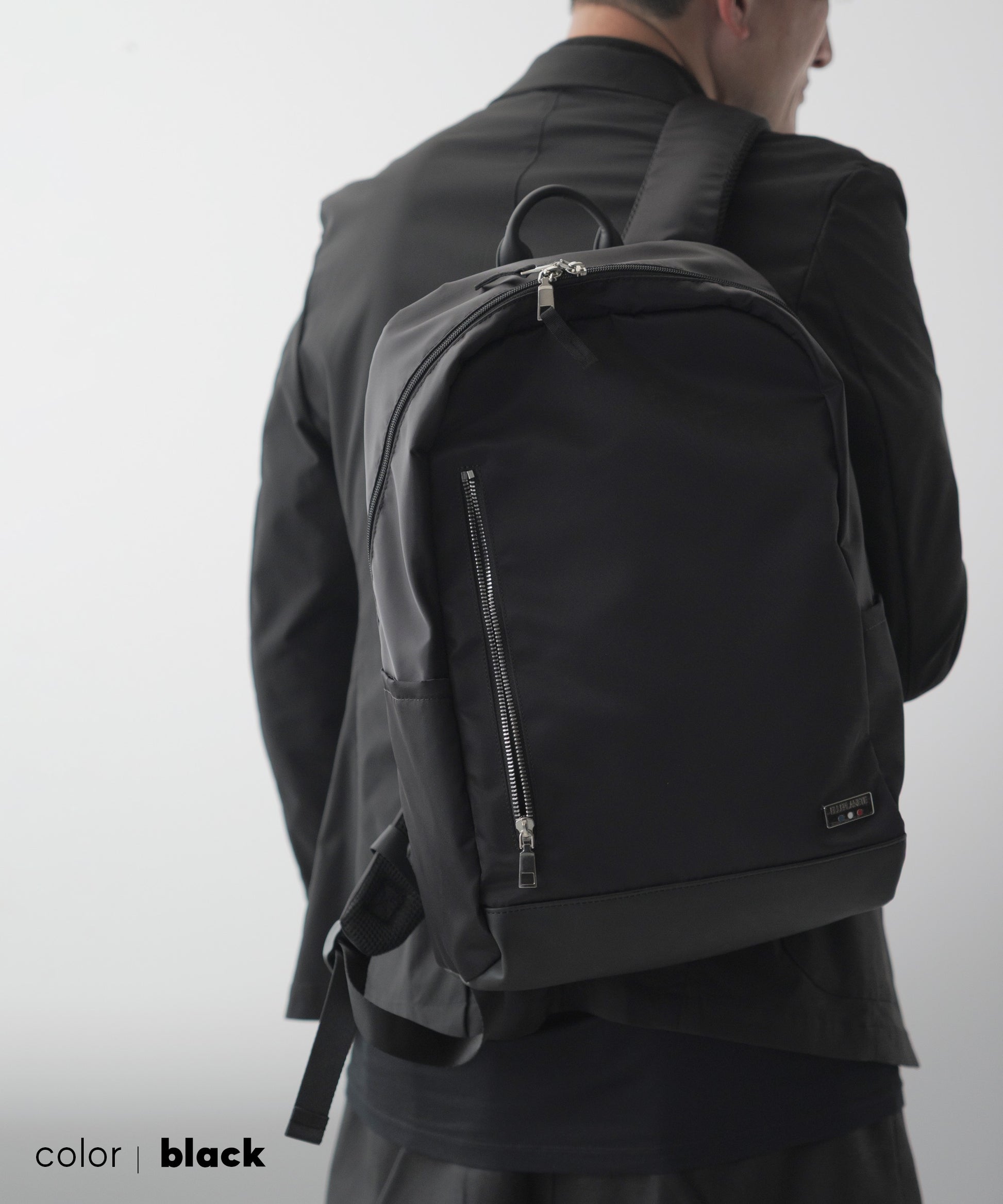 ミニマルでスタイリッシュ、洗礼された大人の雰囲気ナイロンと合成皮革のコンビネーションデイバッグ程よい光沢感が通勤のビジネスにもよく似合うデザイン落ち着いた印象を与えてくれるので、休日カジュアルにもよく馴染むバッグ