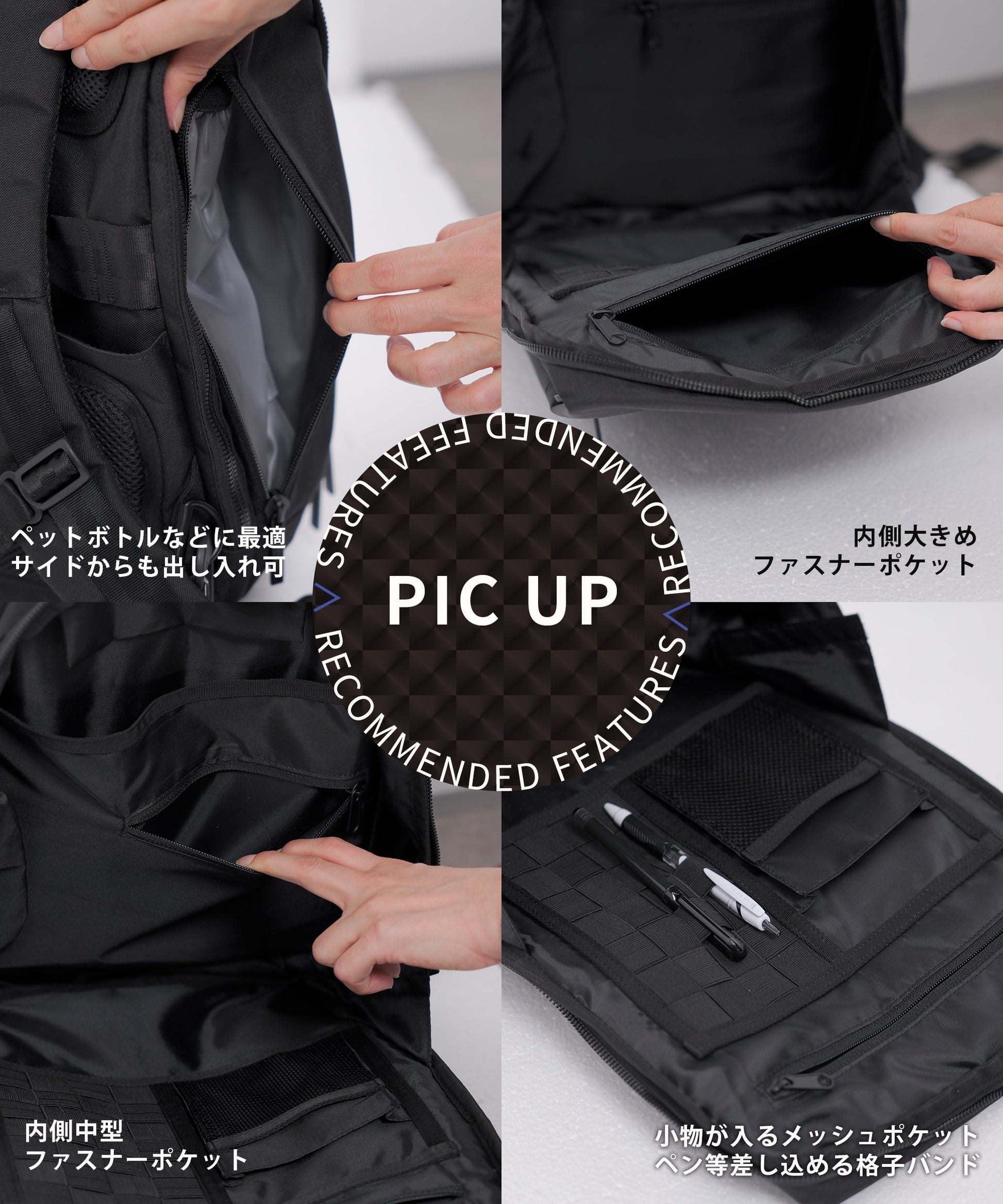 ・背負ったままでも取り出せるサイドから中に直接アクセスできるファスナーポケット。