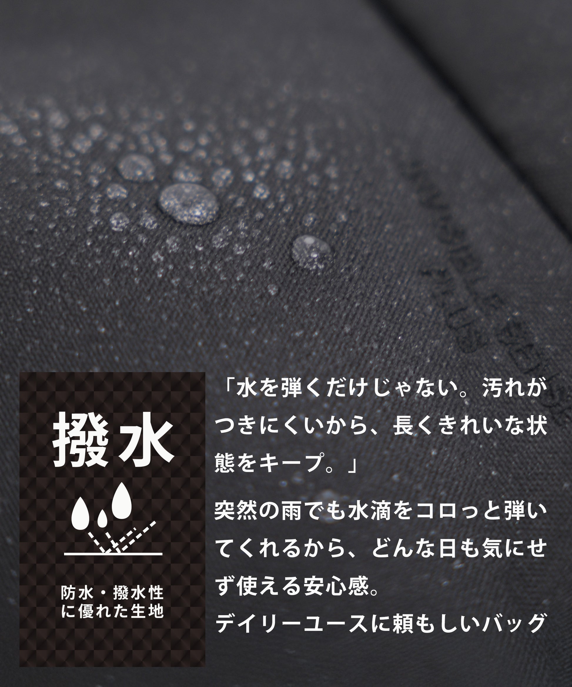 ・水滴が中に染み込まないよう防水素材使用のポケットも装備。