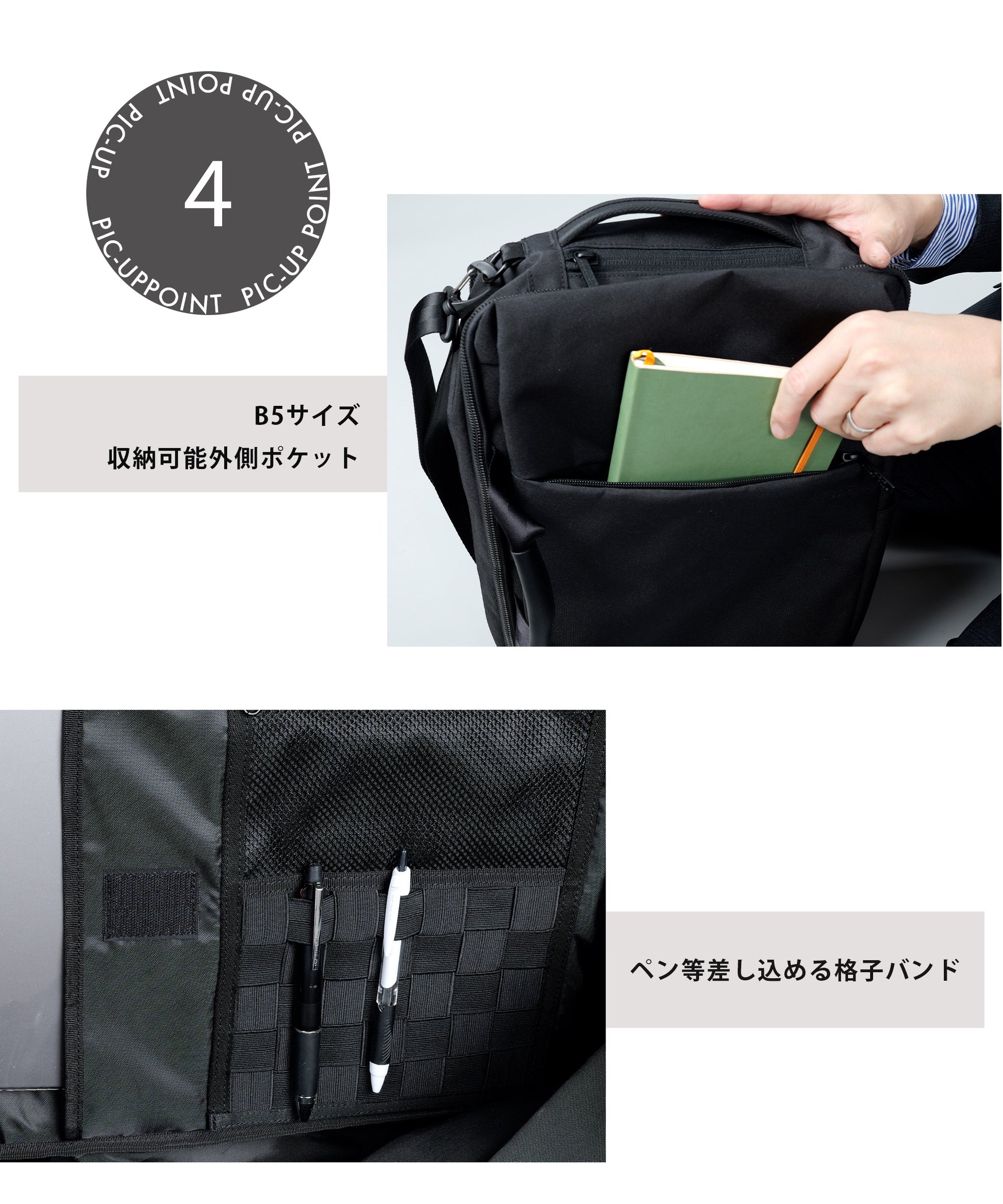 機能:15インチPC収納、B4サイズ対応、撥水加工