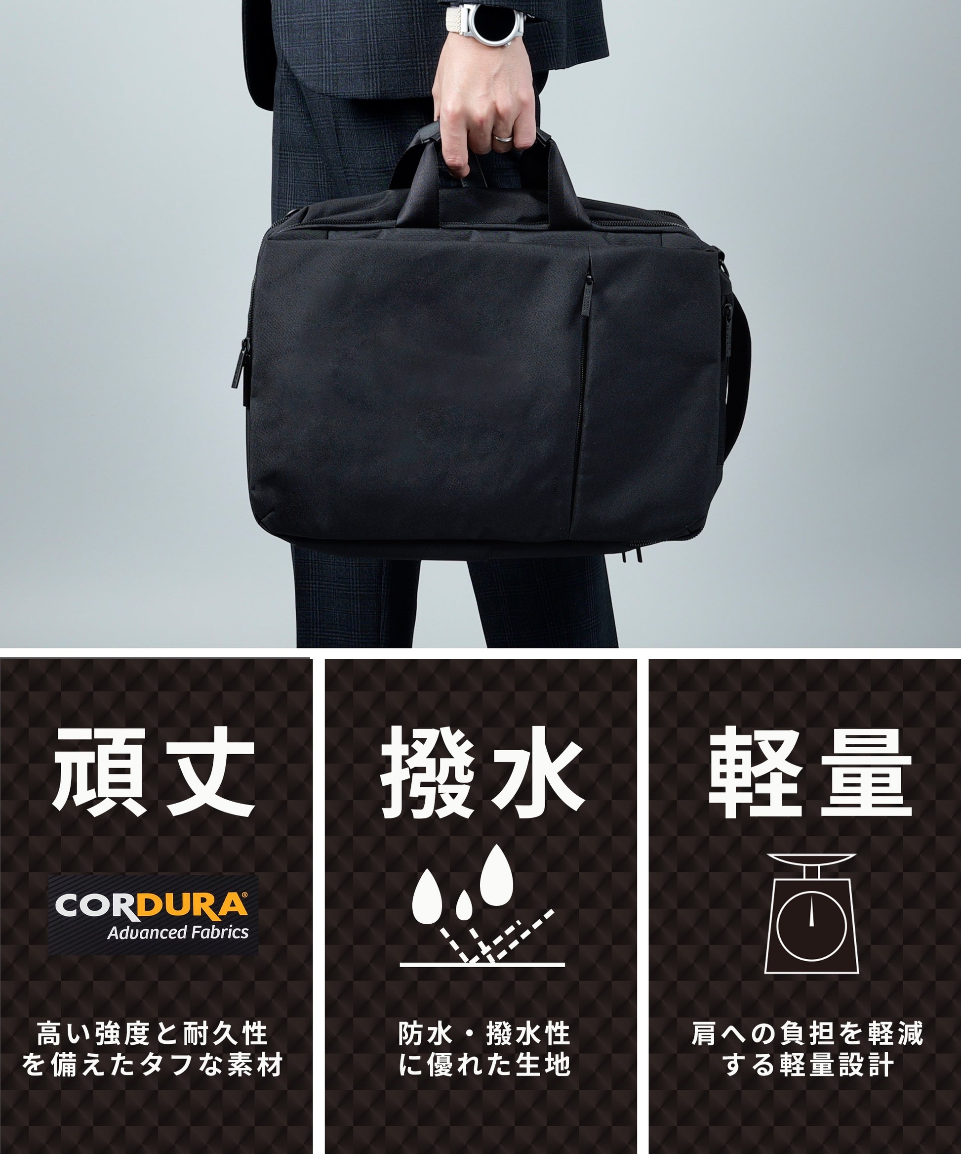 働く大人のための機能的なバッグ・アクセサリー。AWCは、毎日の通勤を快適にする軽量バッグや、スタイルを引き締める小物など、実用性とミニマルなデザインを兼ね備えた「仕事の装備」をご提案します。