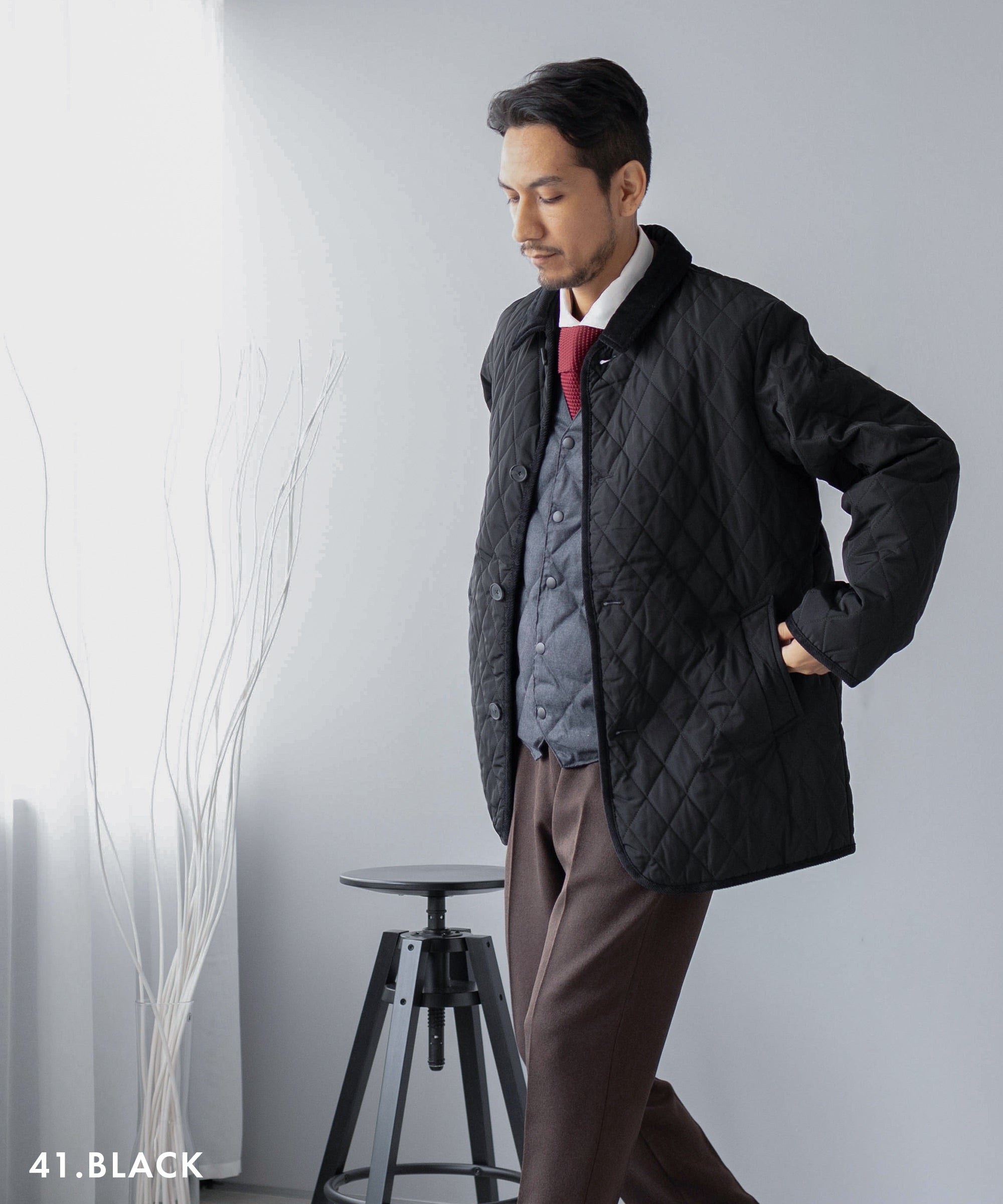 ダイヤキルティングとコーデュロイの合わせがクラシカルながら