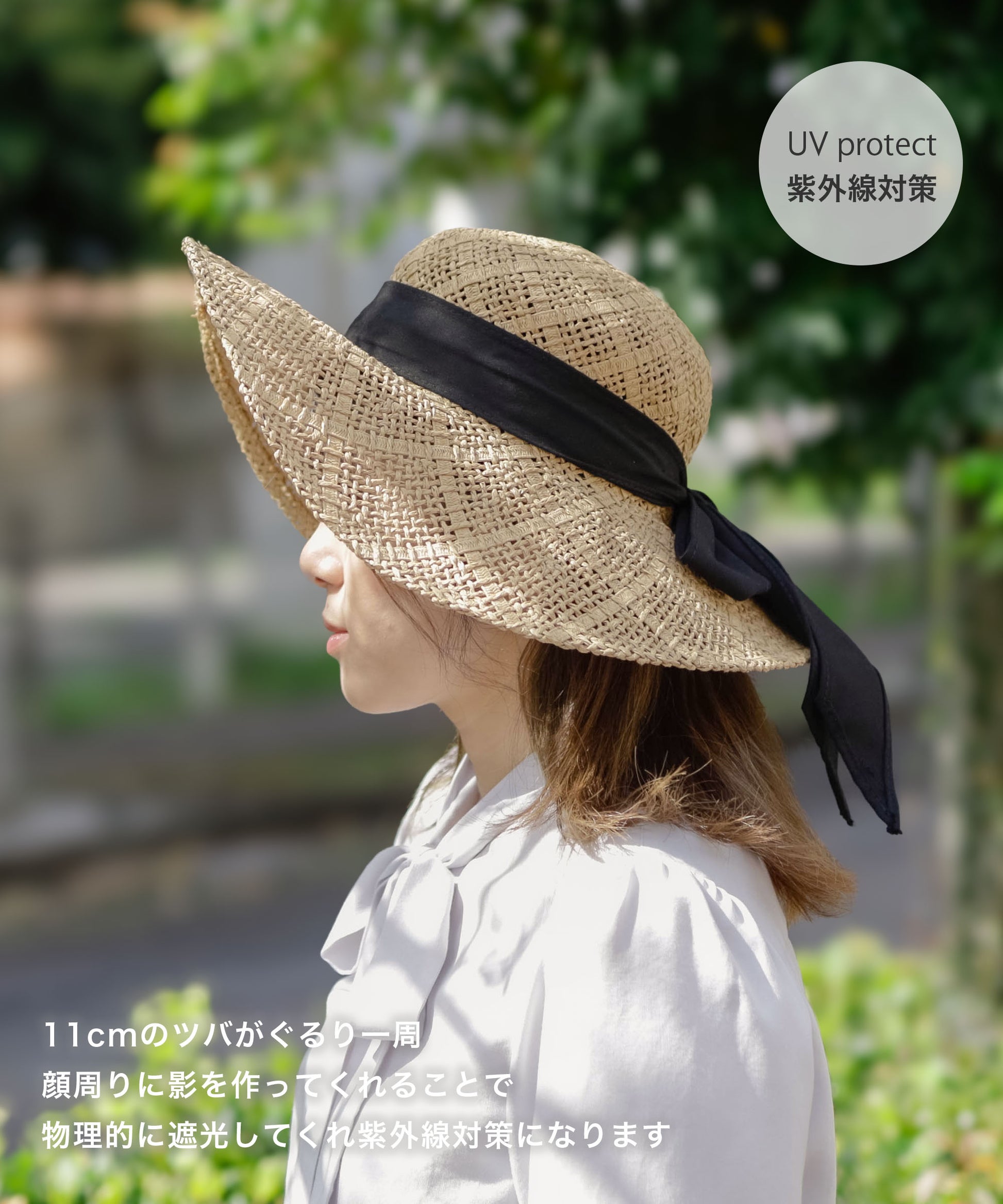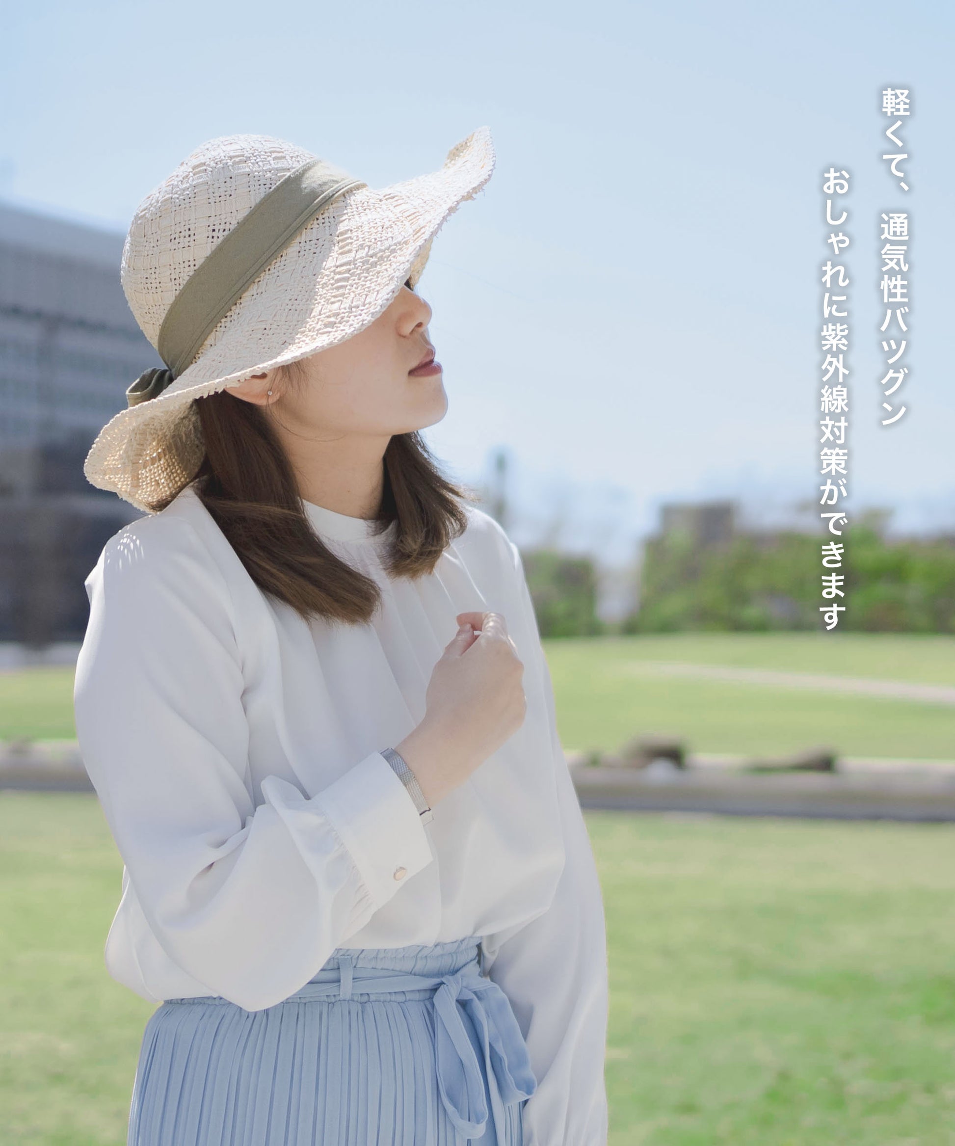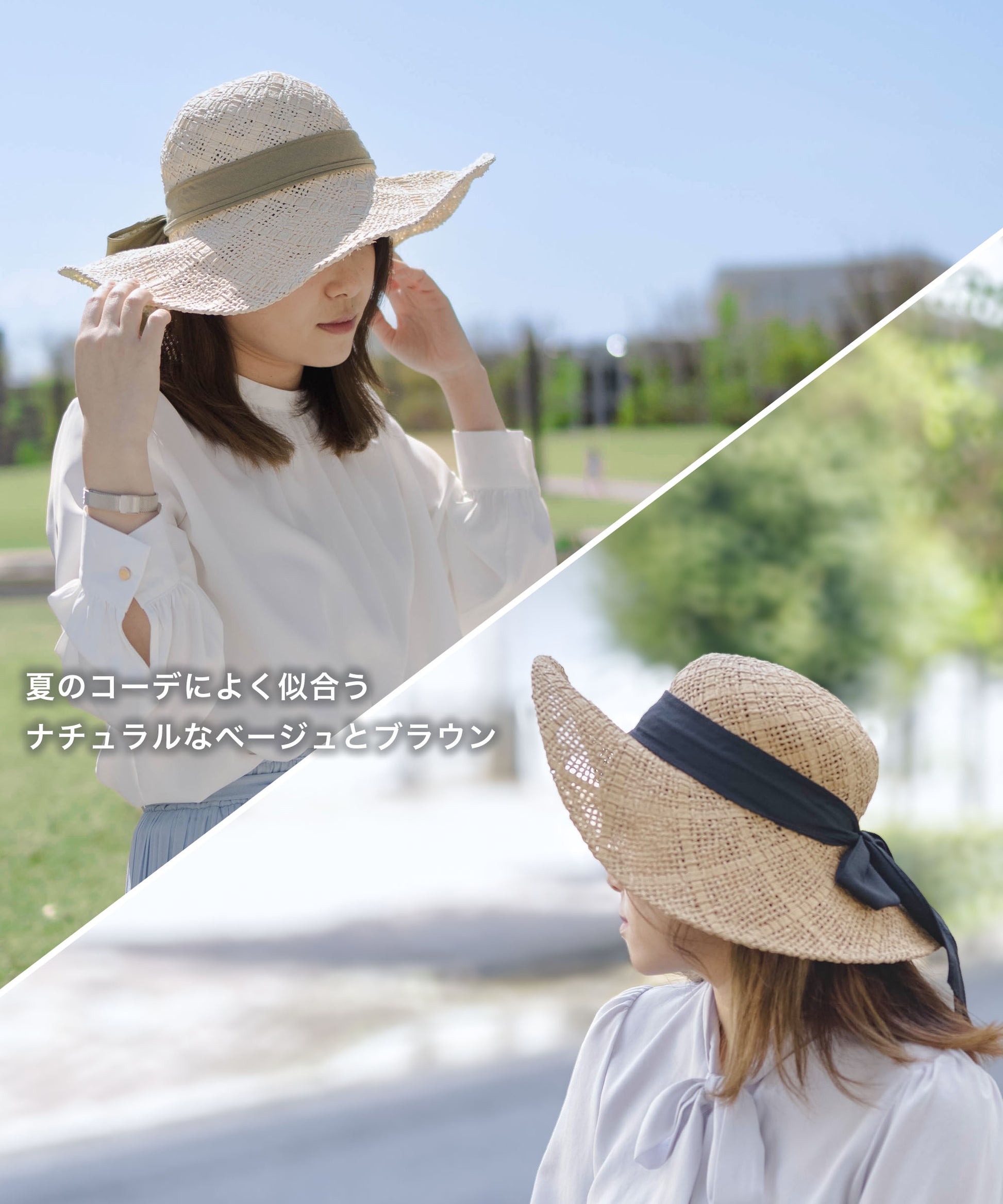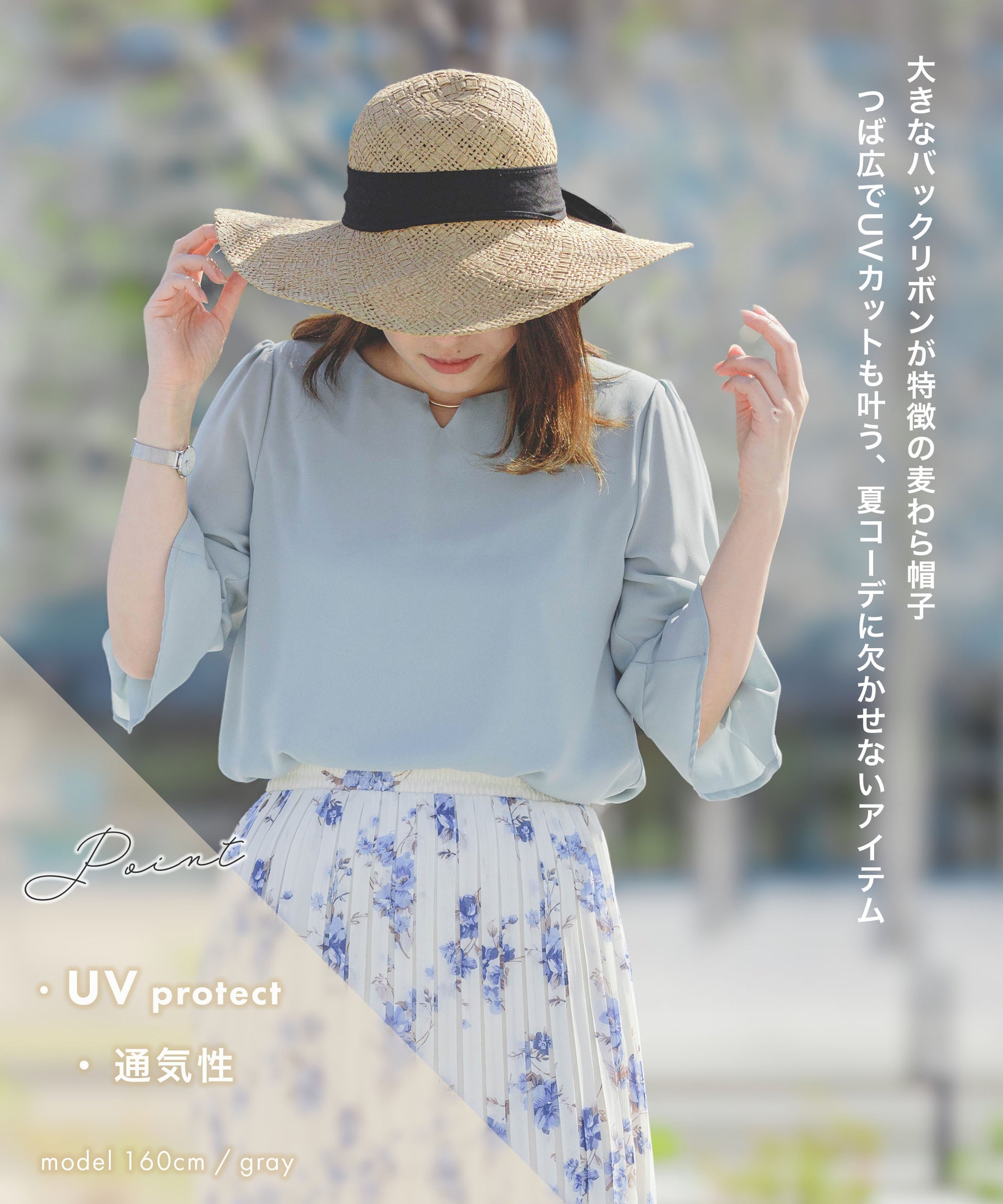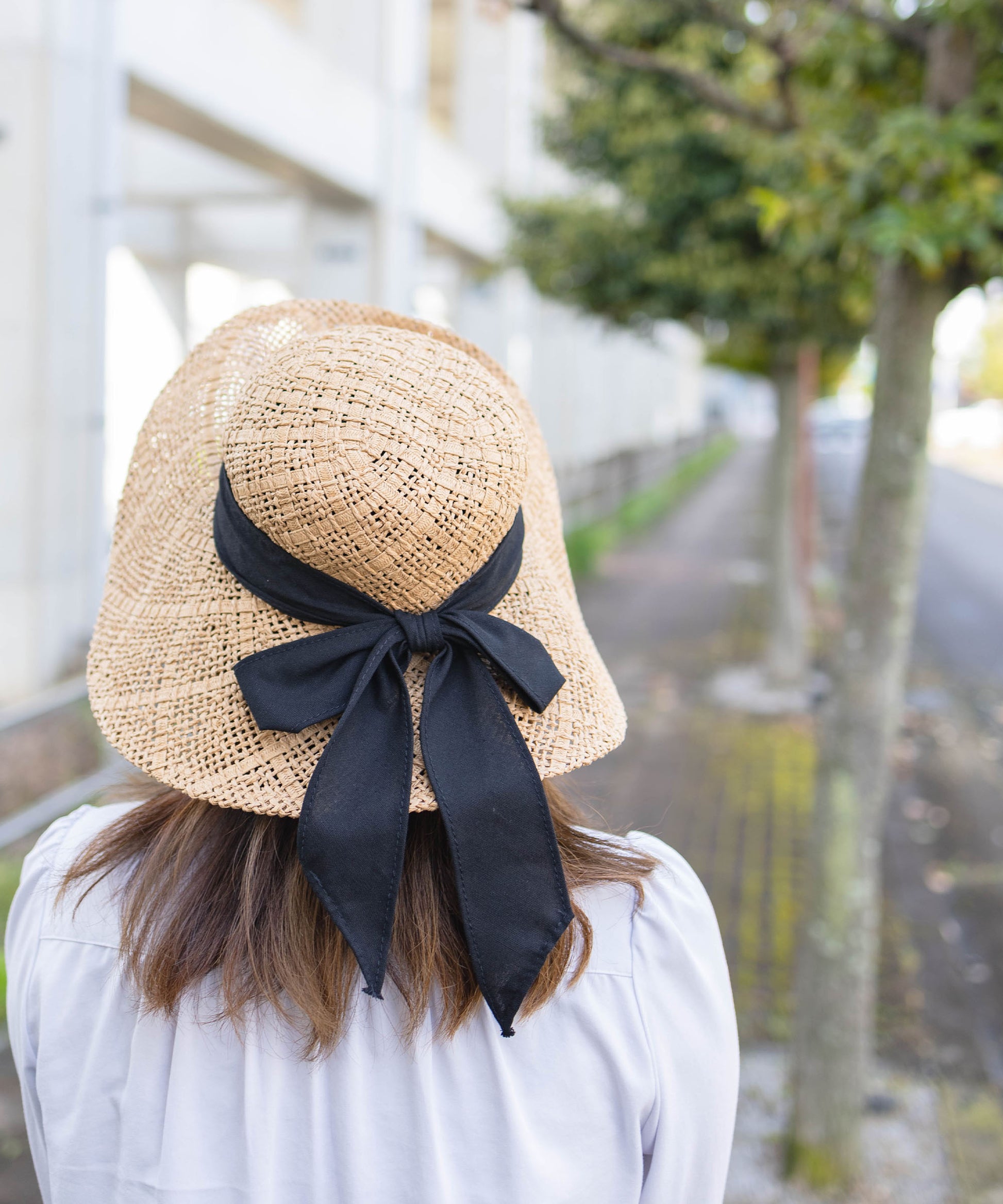 通気性バツグンでUVカットも叶う、バックリボン麦わら帽子