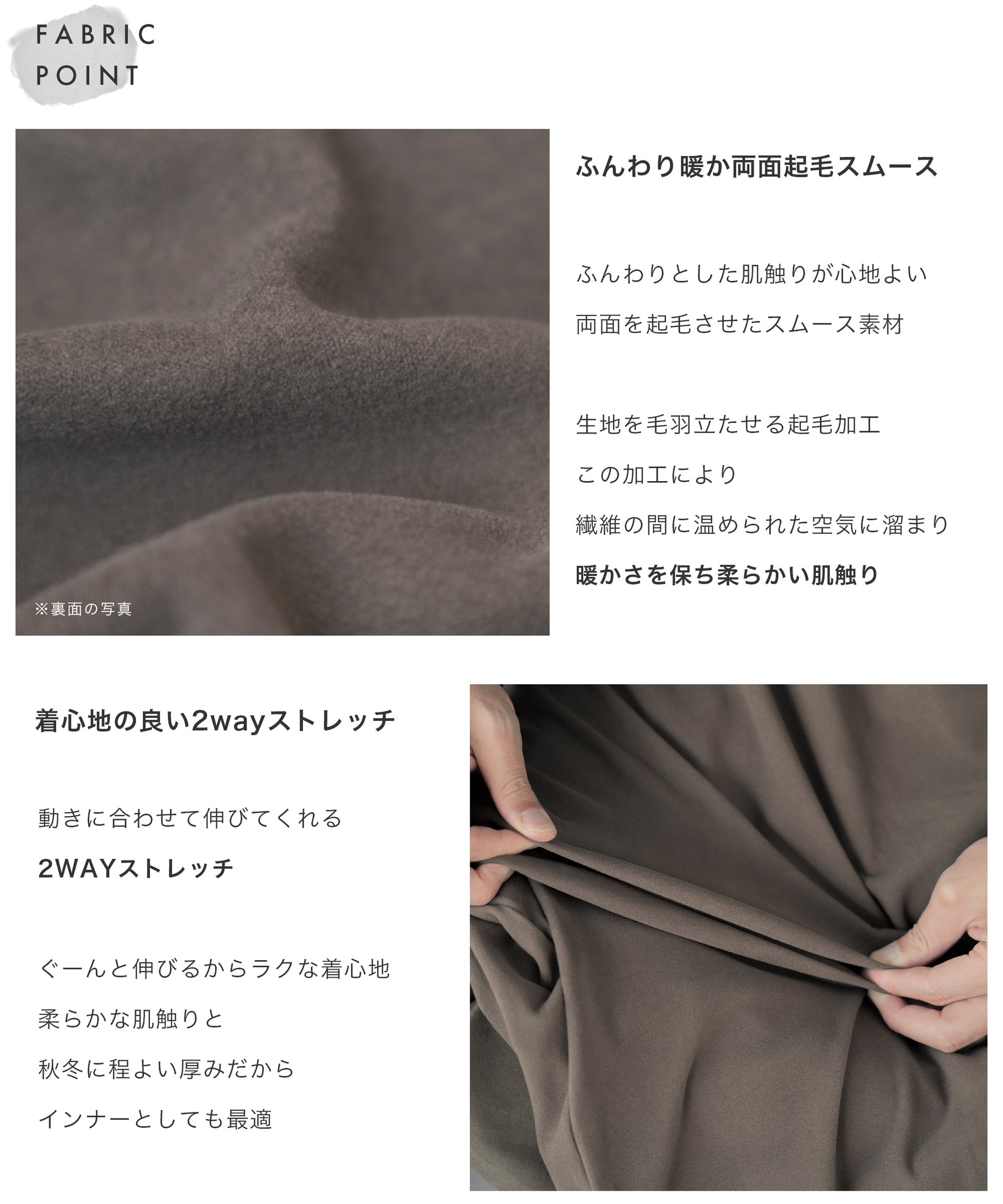 ふんわりとした肌触りが心地よい両面を起毛させたスムース素材