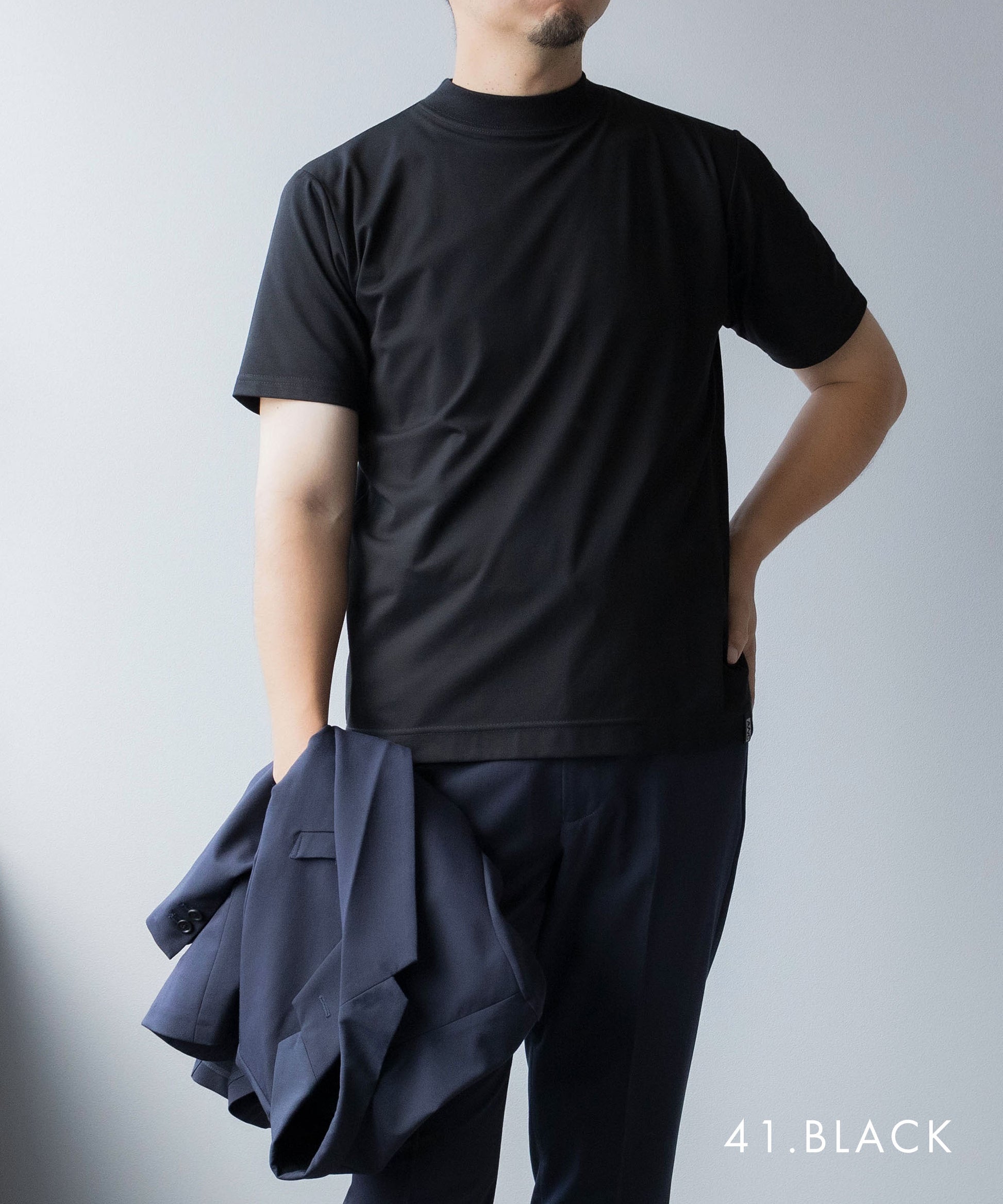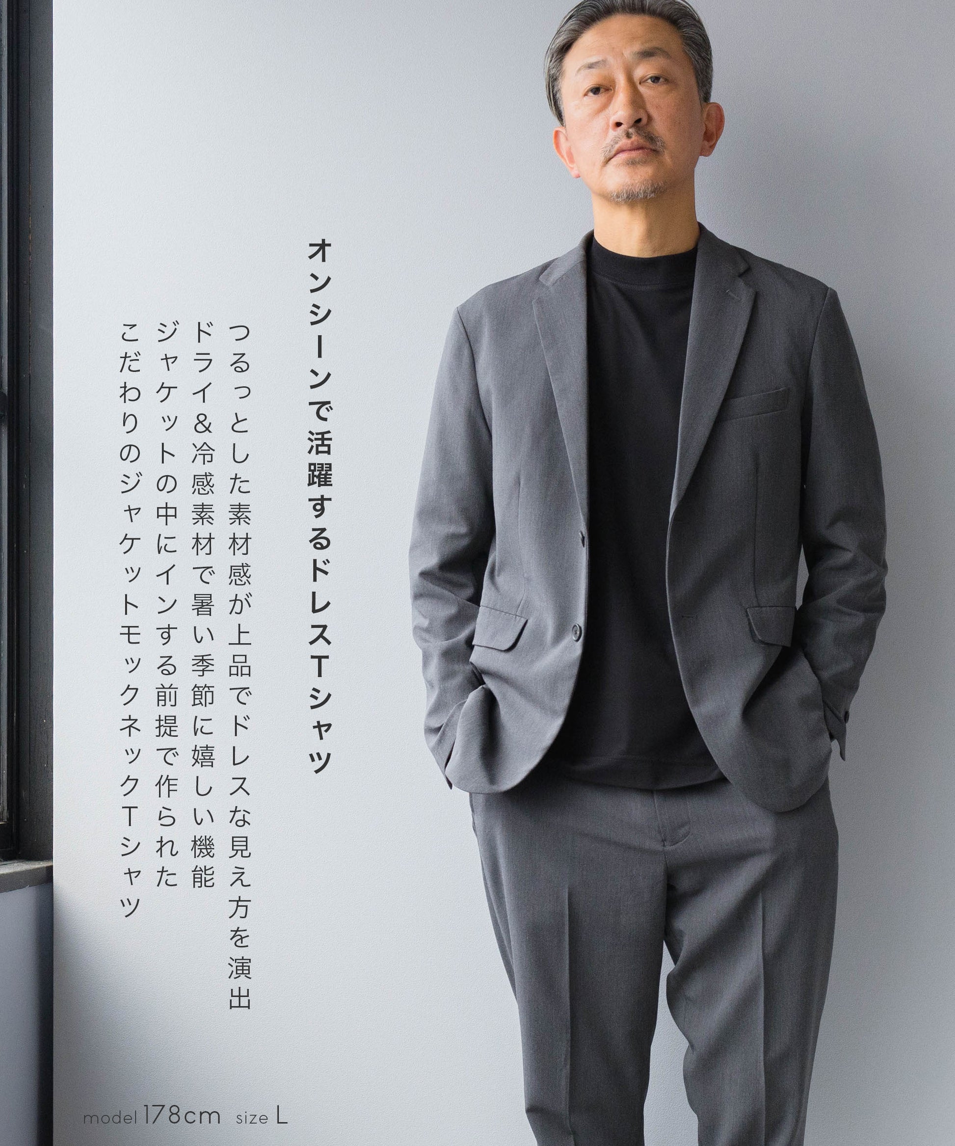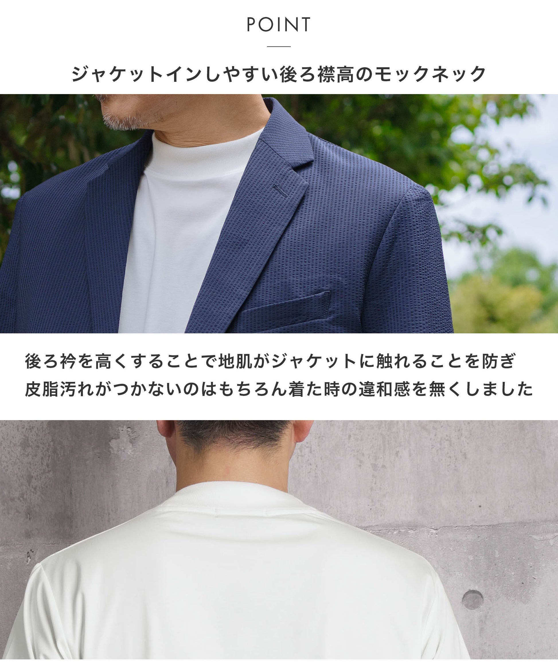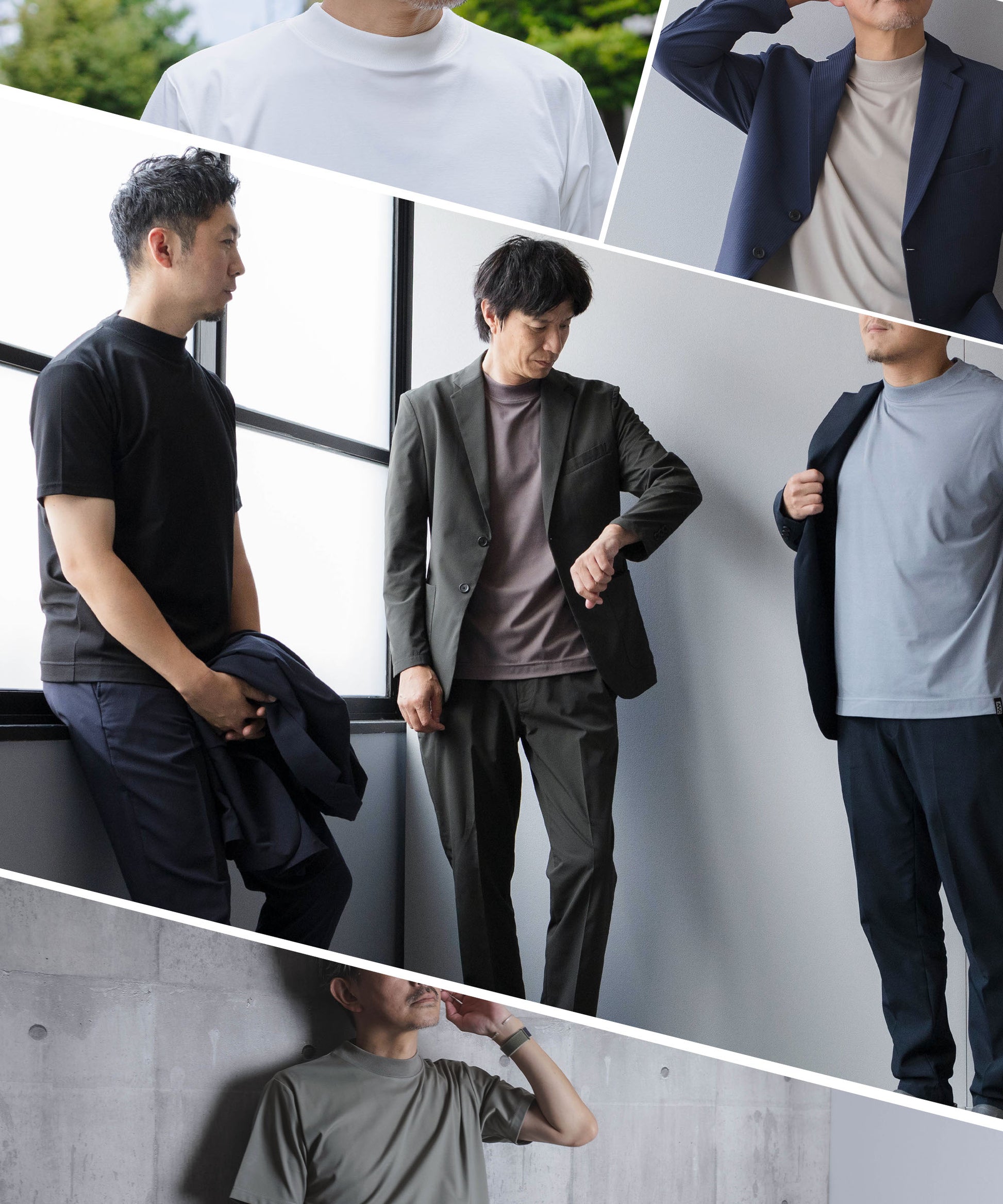 ジャケットインやセットアップのインナーに最適なジャケット専用モックネックTシャツ。