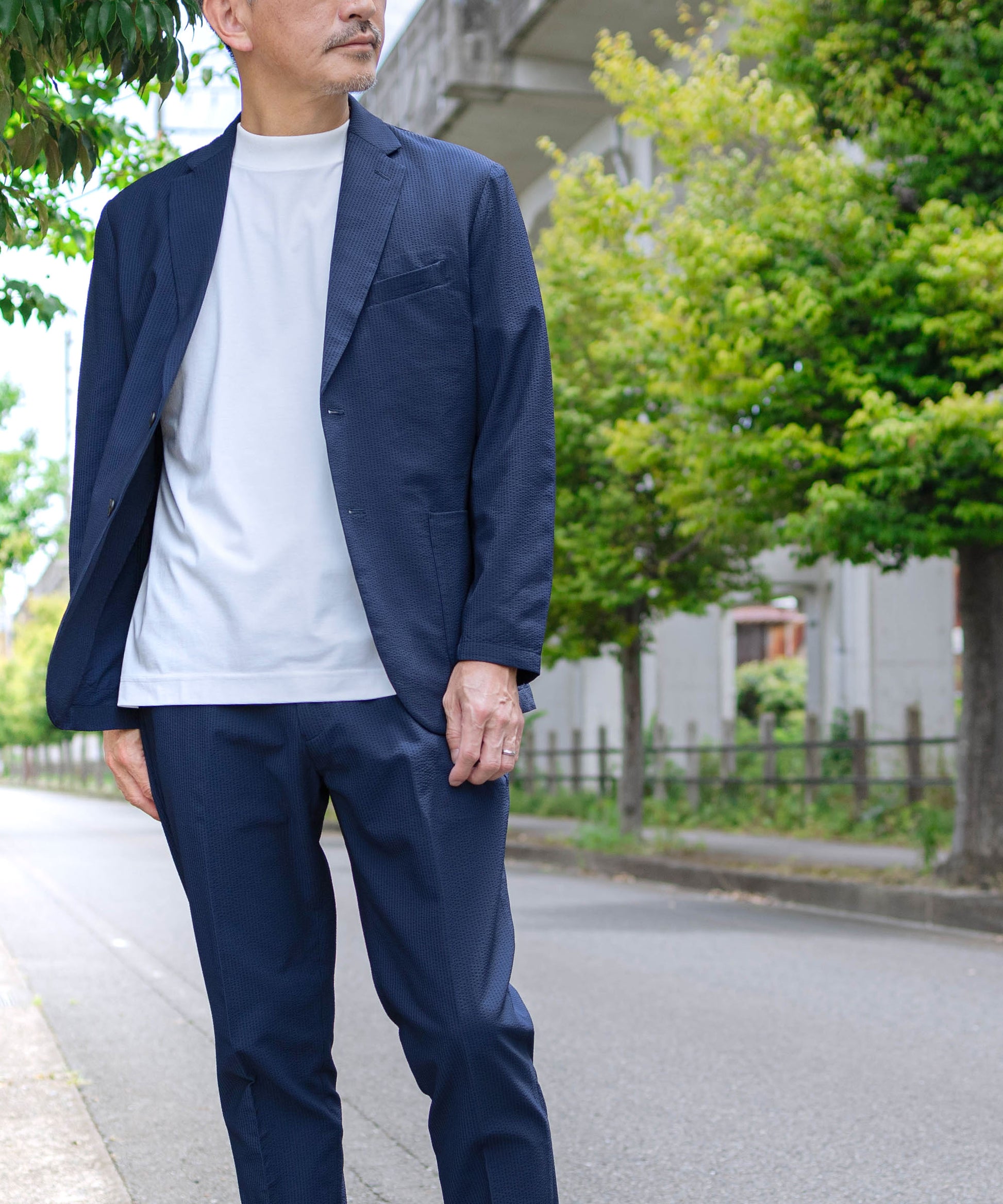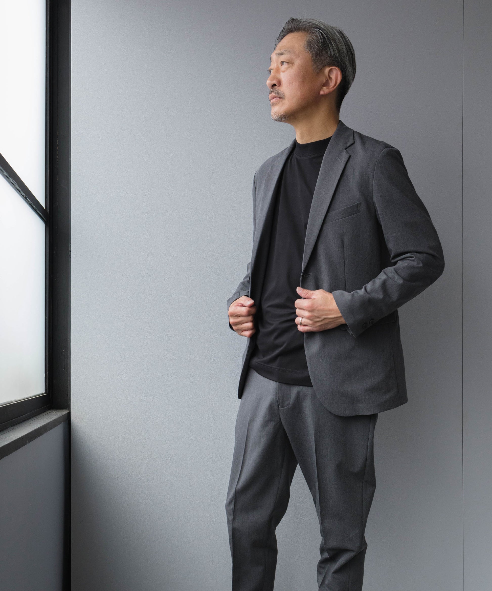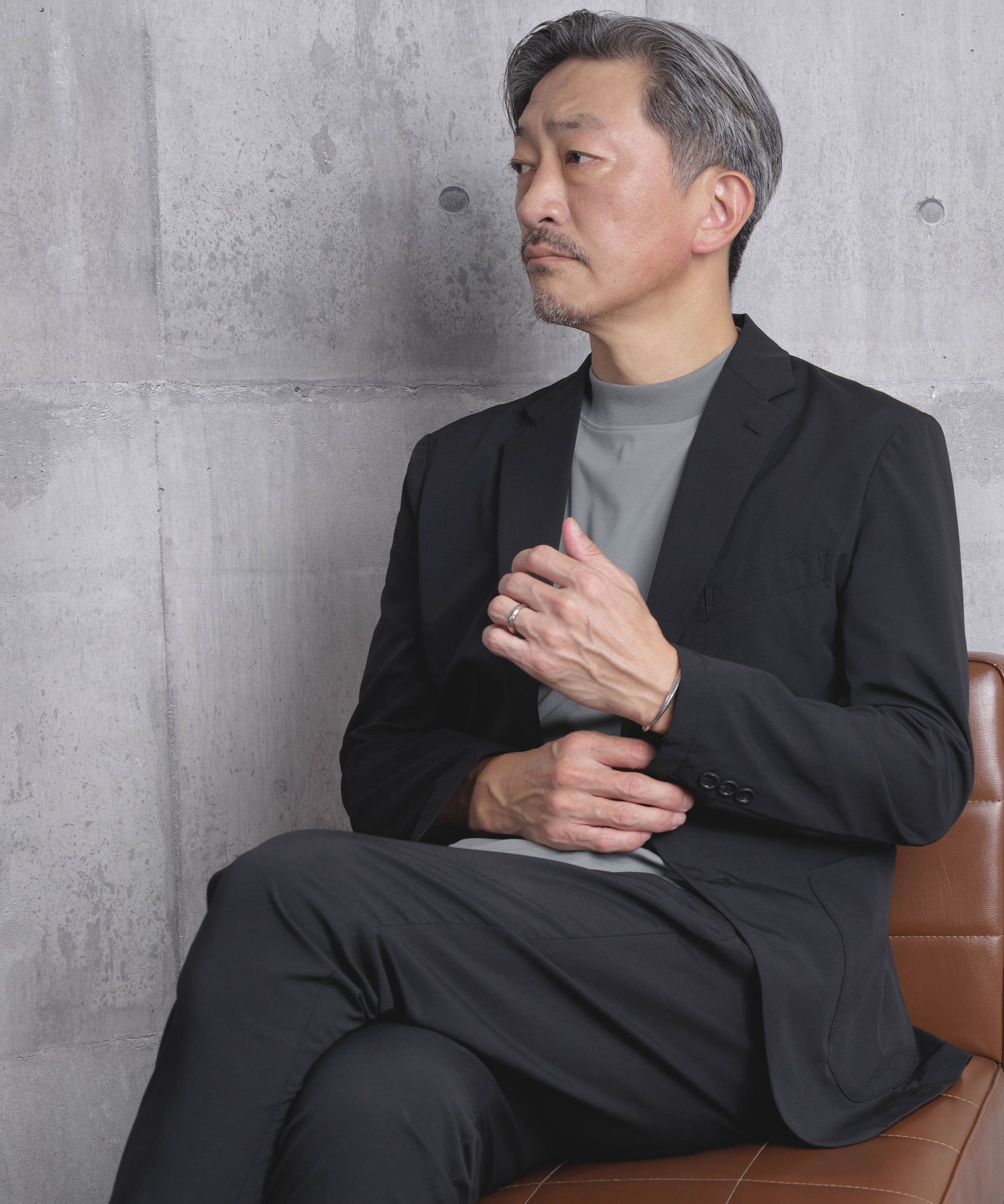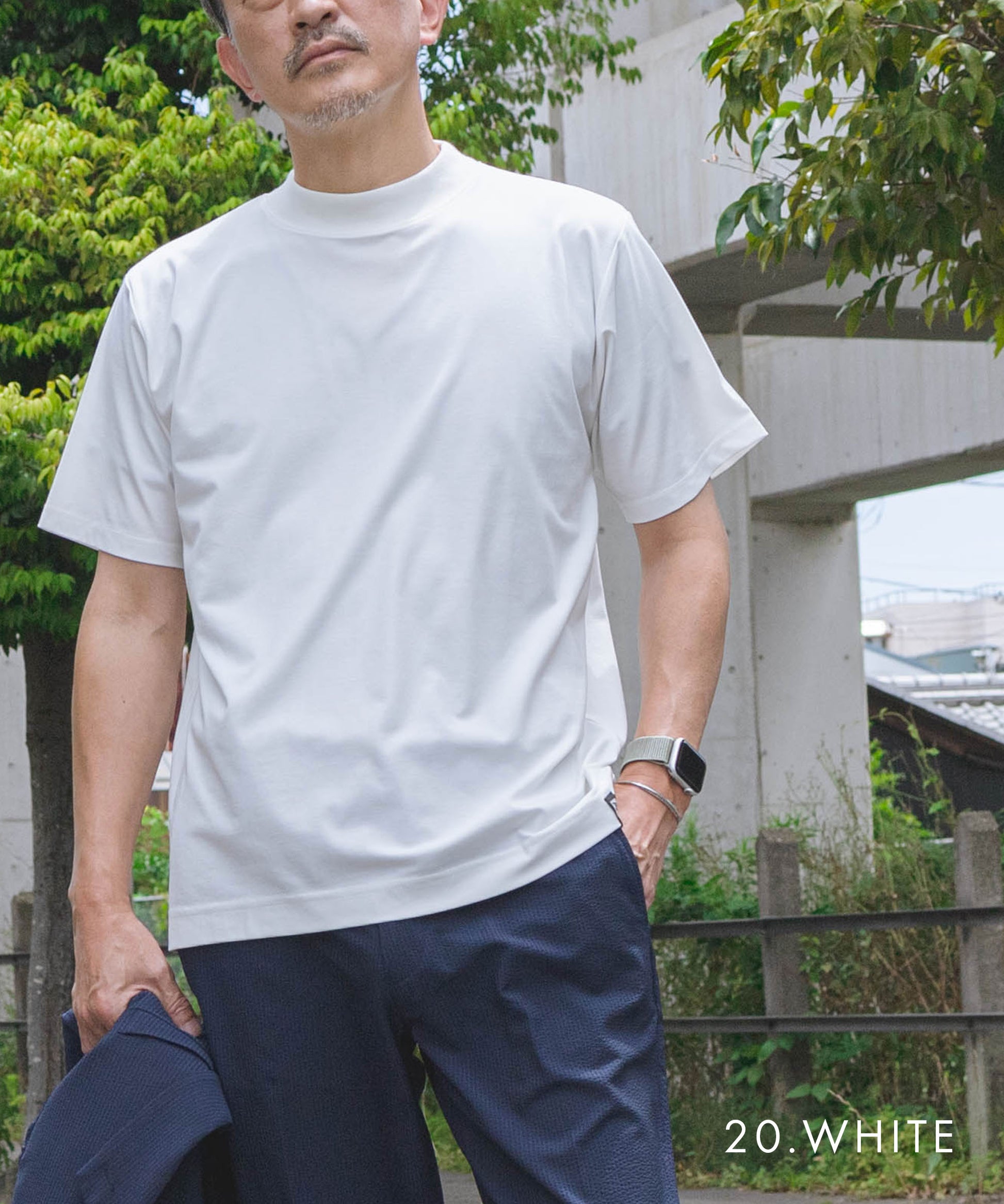 ジャケットインやセットアップのインナーに最適なジャケット専用モックネックTシャツ。