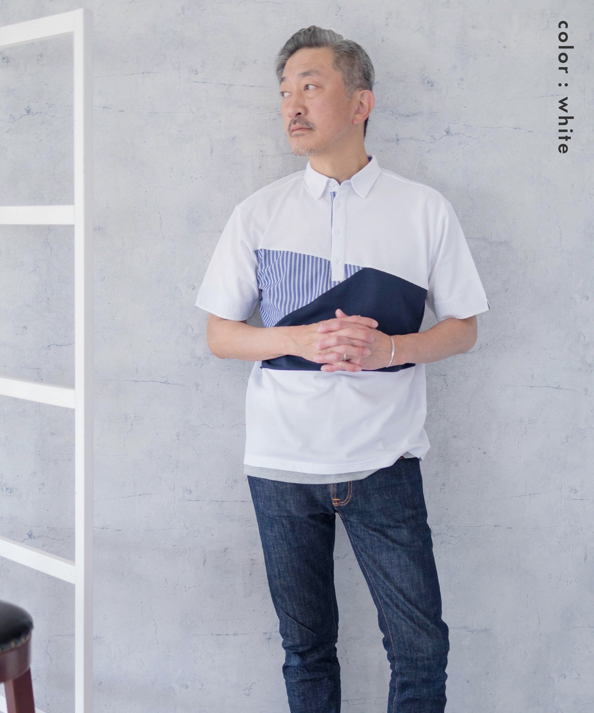 フロントの異素材パターン切り替えがアクセント切替ポロシャツ