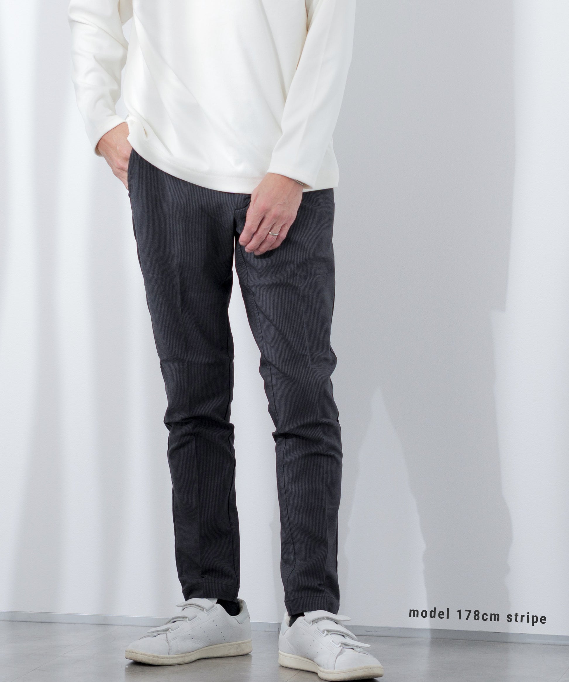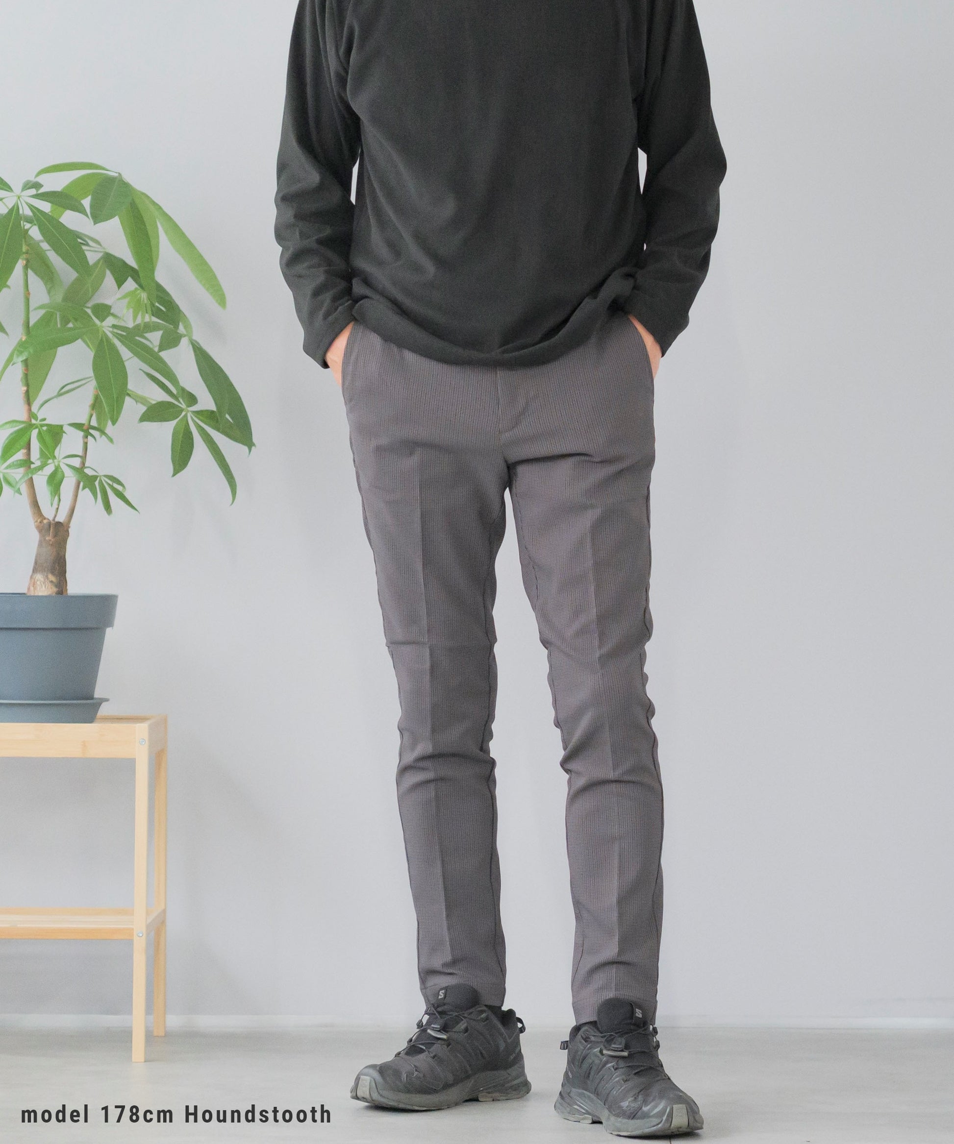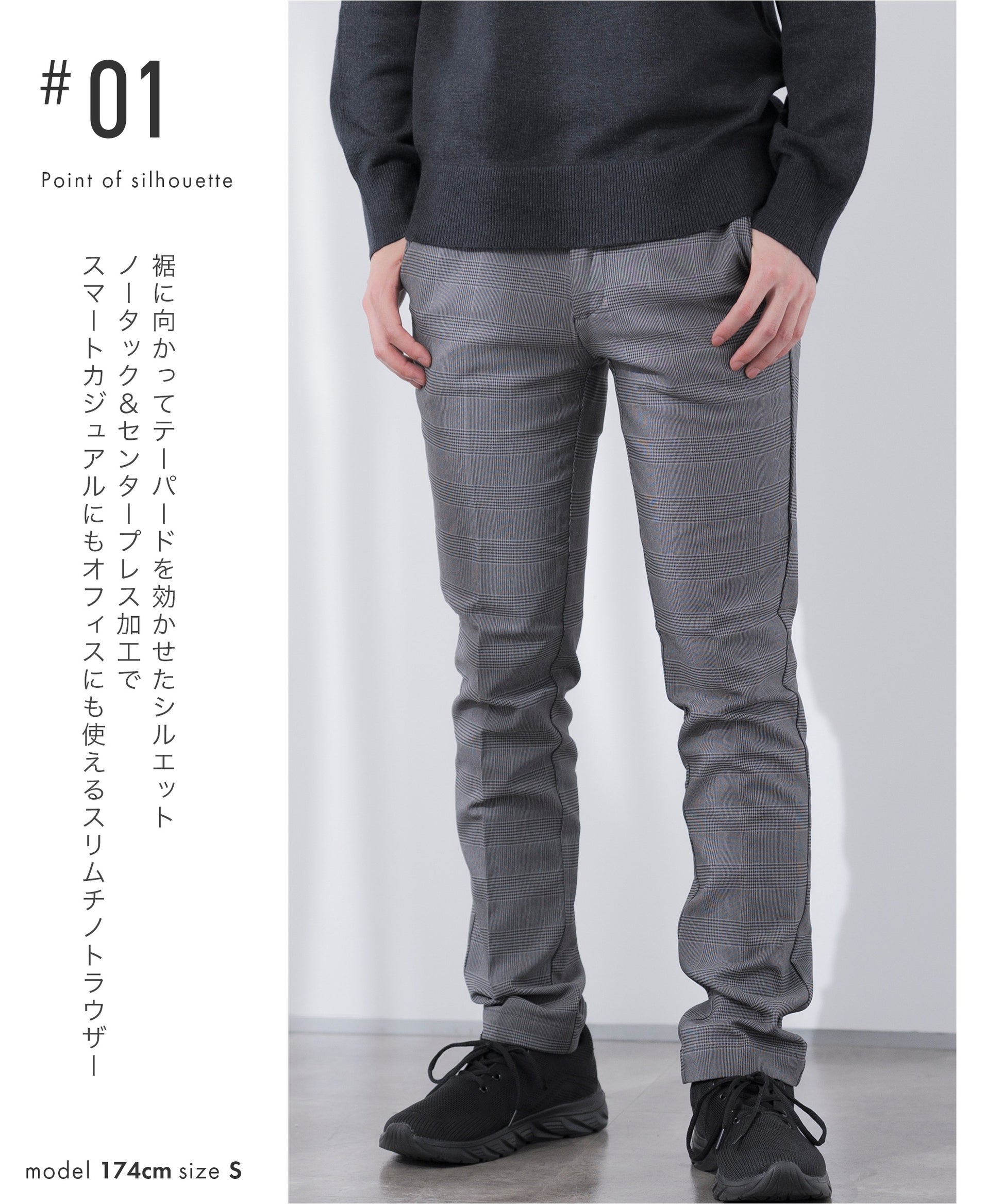 ノータック&センタープレス加工でスマートカジュアルにもオフィスにも使えるスリムトラウザー