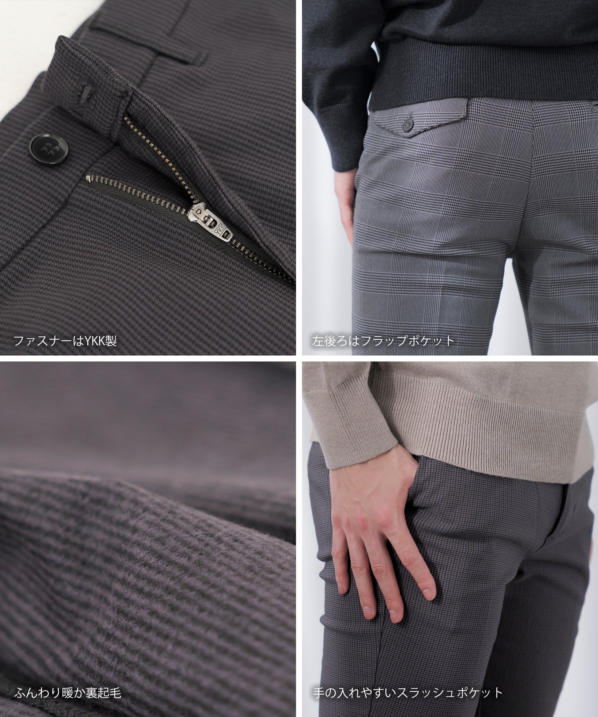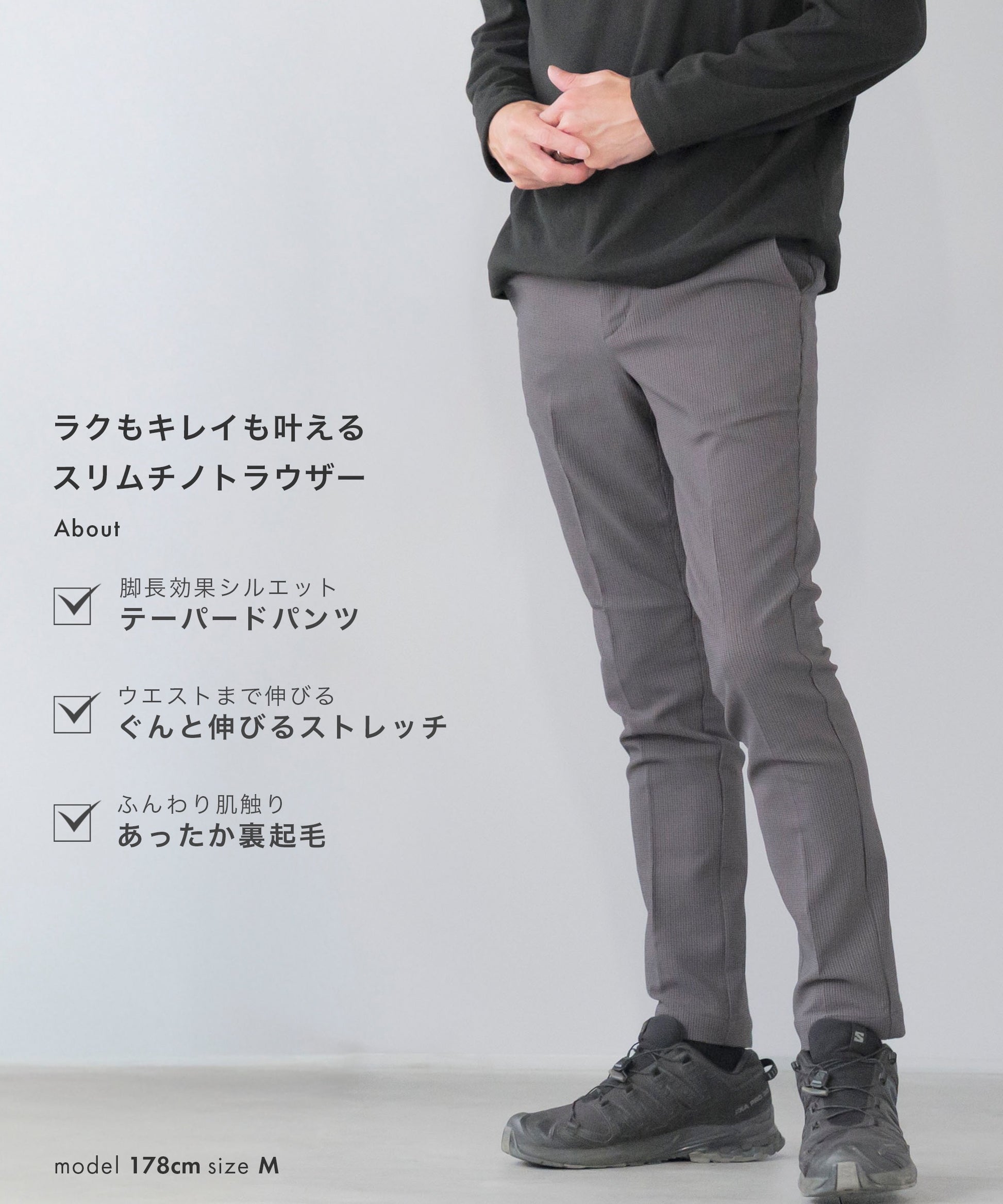 [AWC] 裏起毛 スリム チノ トラウザー パンツ