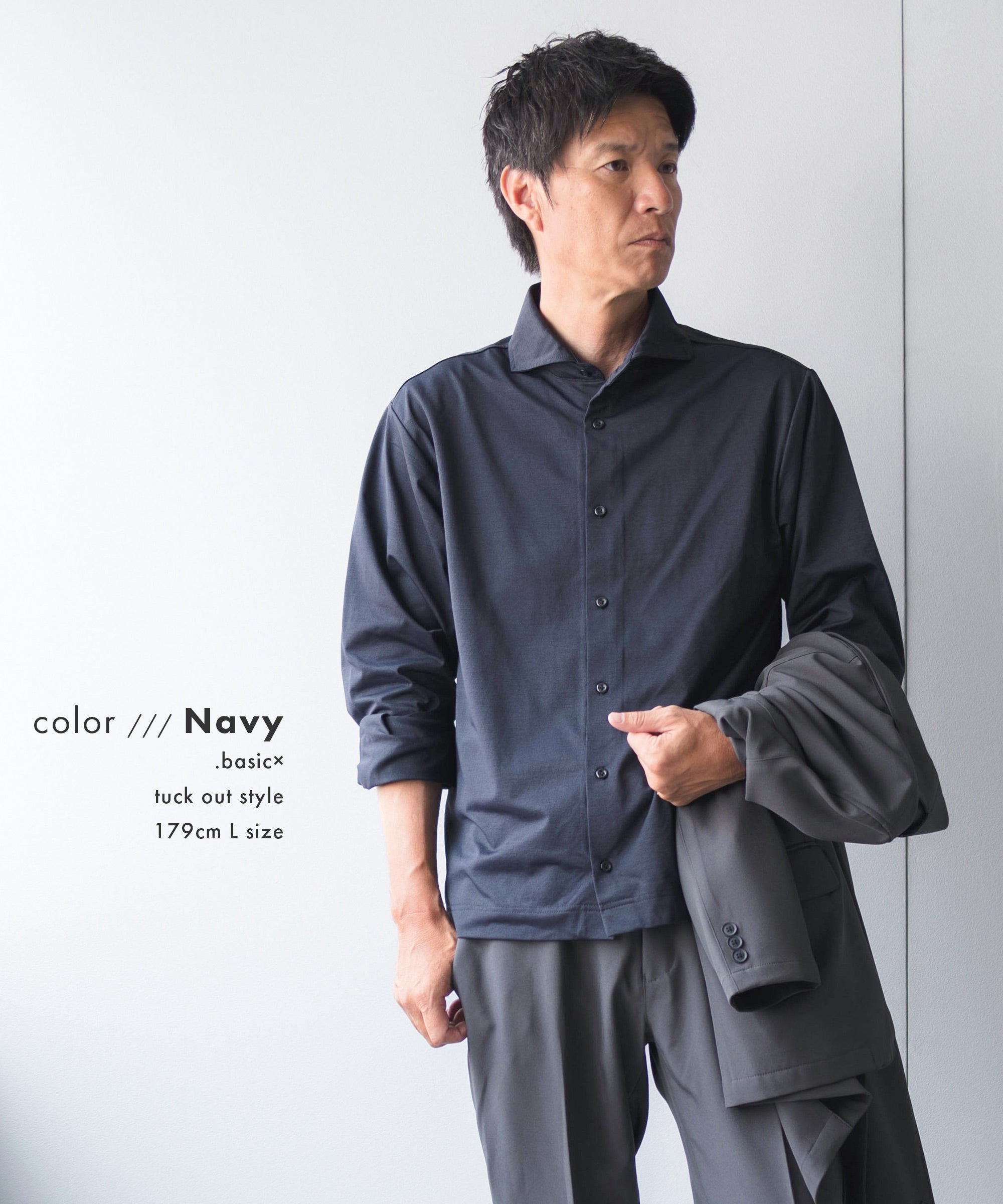ノータイでもネクタイありでも襟元がすっきり見えてさらにジャケットを羽織ってもサマになります