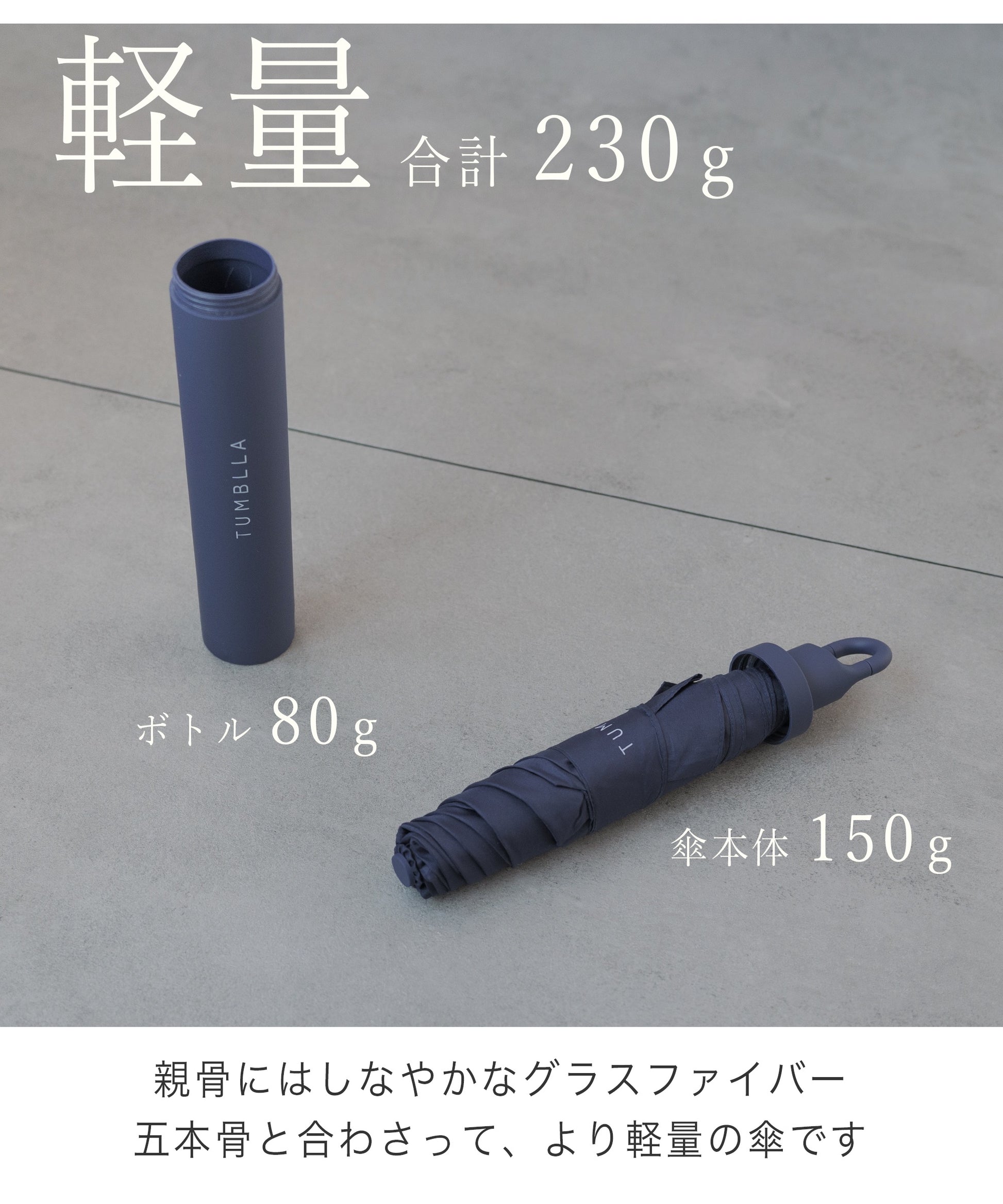 タンブラーのように持ち運べるボトルケース付きの晴雨兼用折り畳み傘