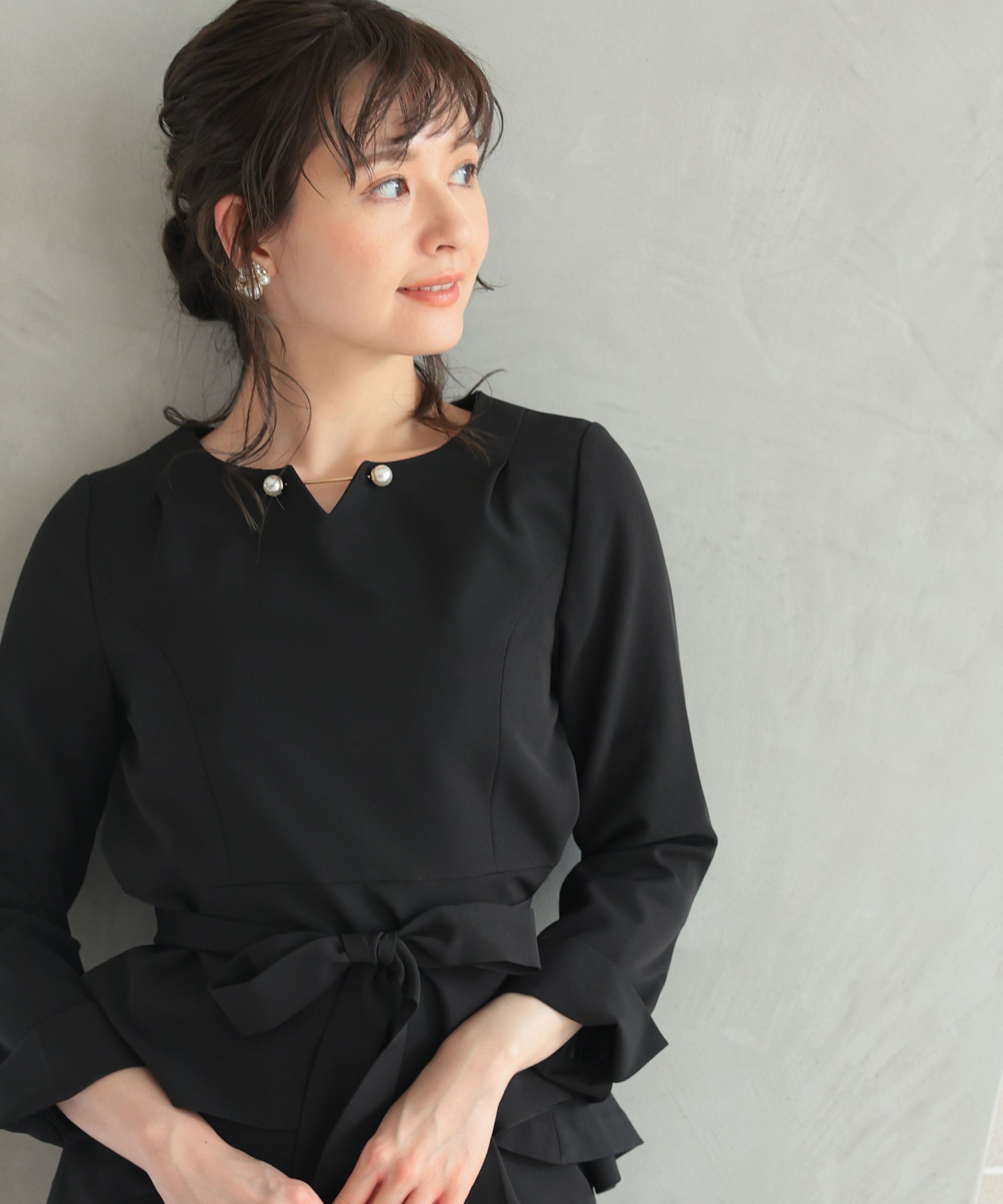 セレモニーシーンにおすすめの女性らしく華やかな”セレモニースーツ”です。