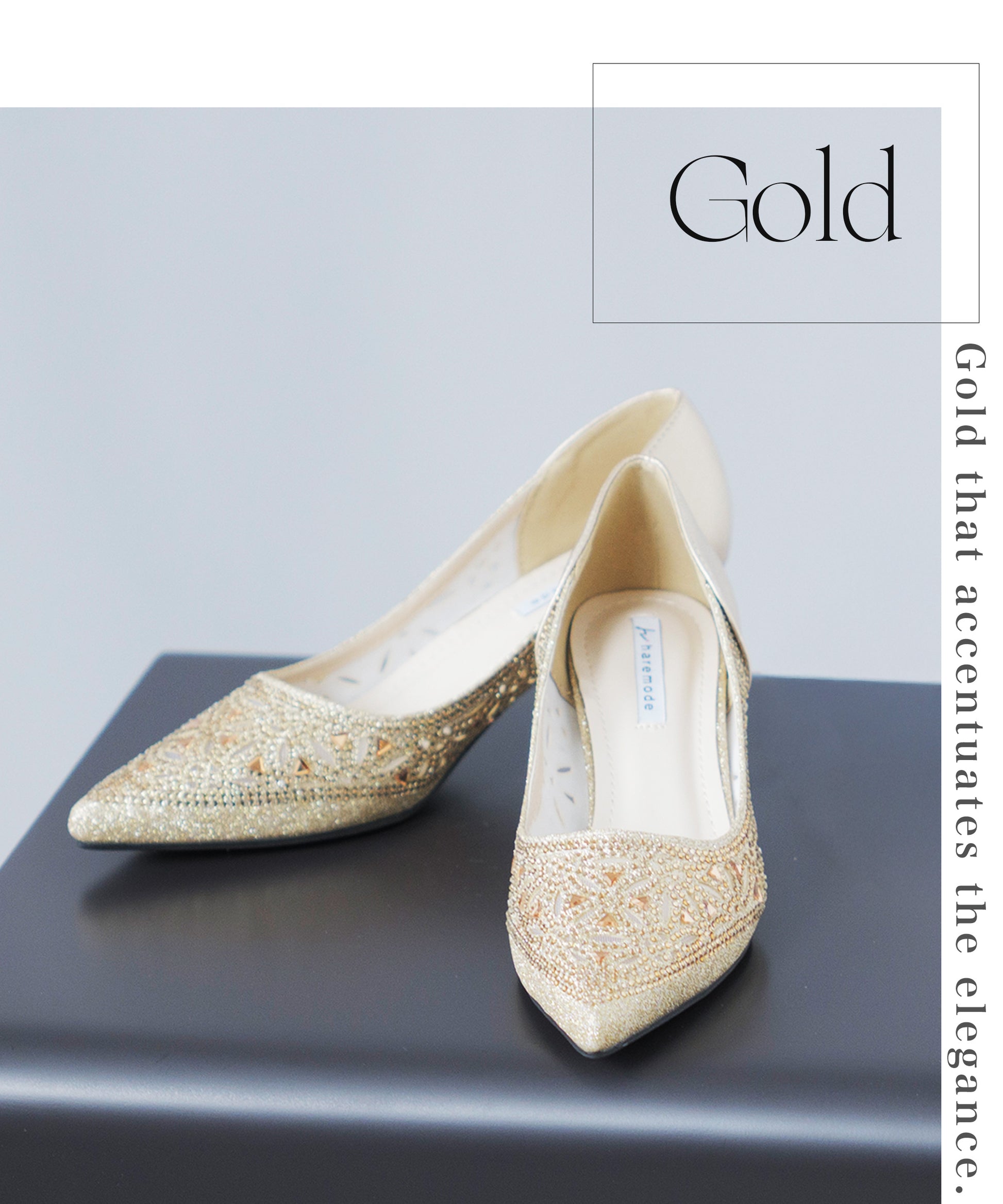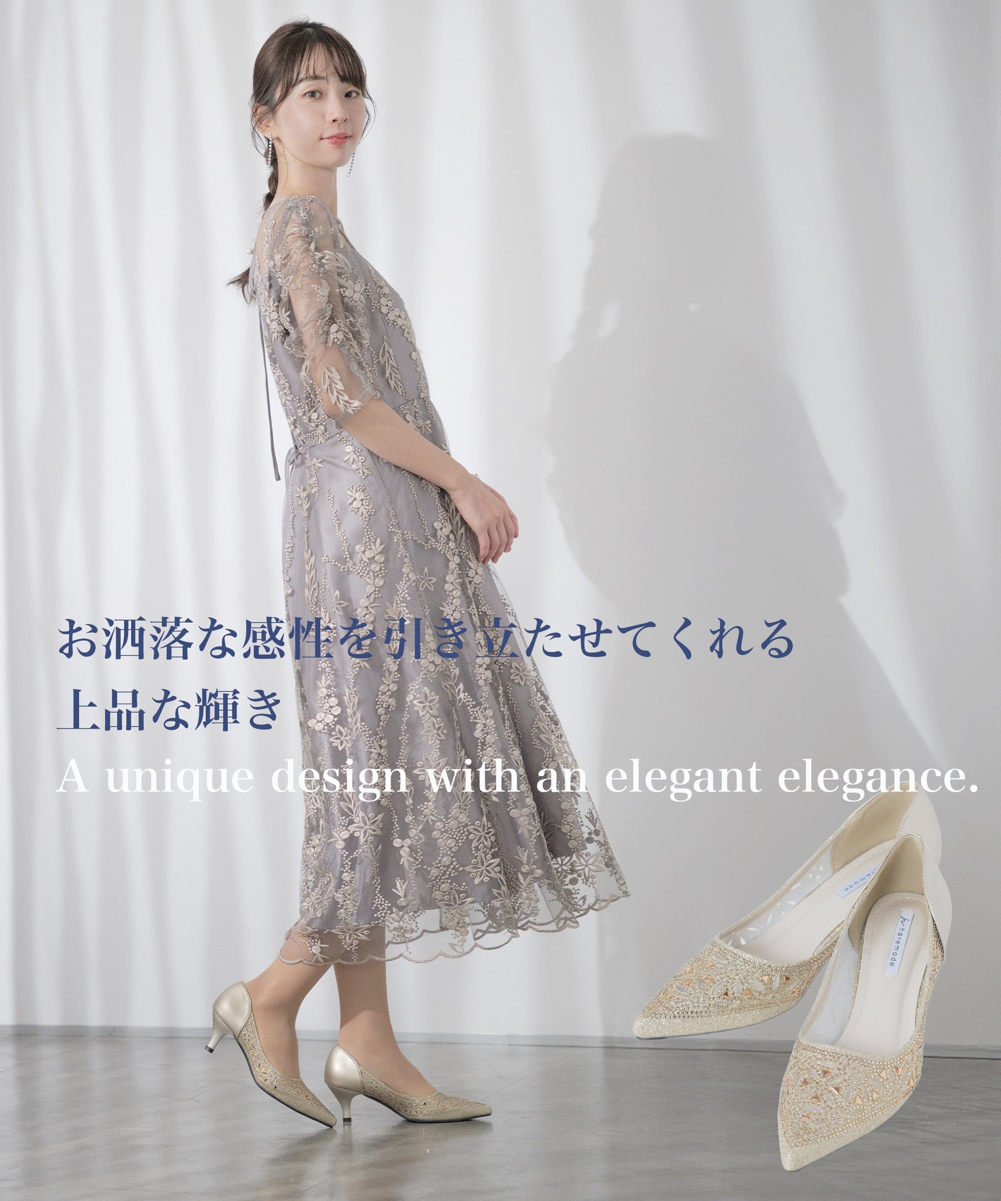 足元から華やかさを演出。シンプルな装いには個性を、華やかなドレスには更なる輝きをプラス。