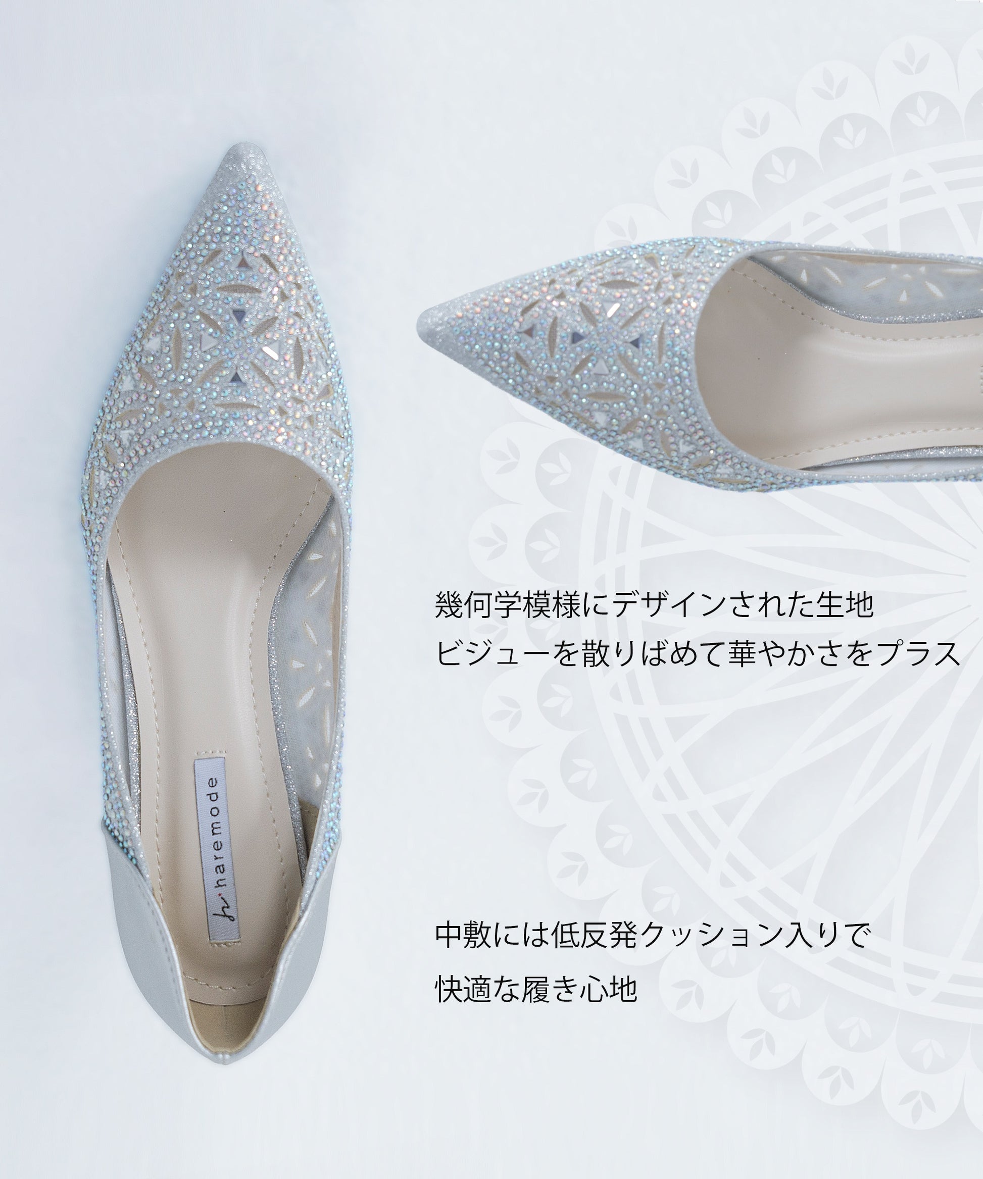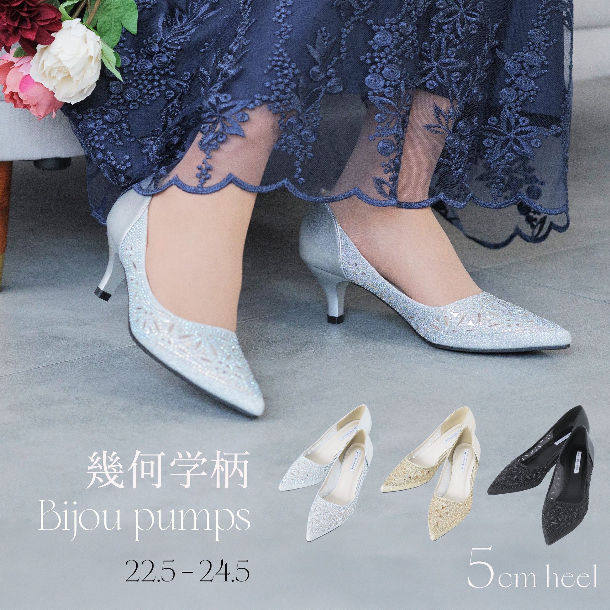 グリッターパンプス ビジューパンプス おしゃれな幾何学柄デザイン。