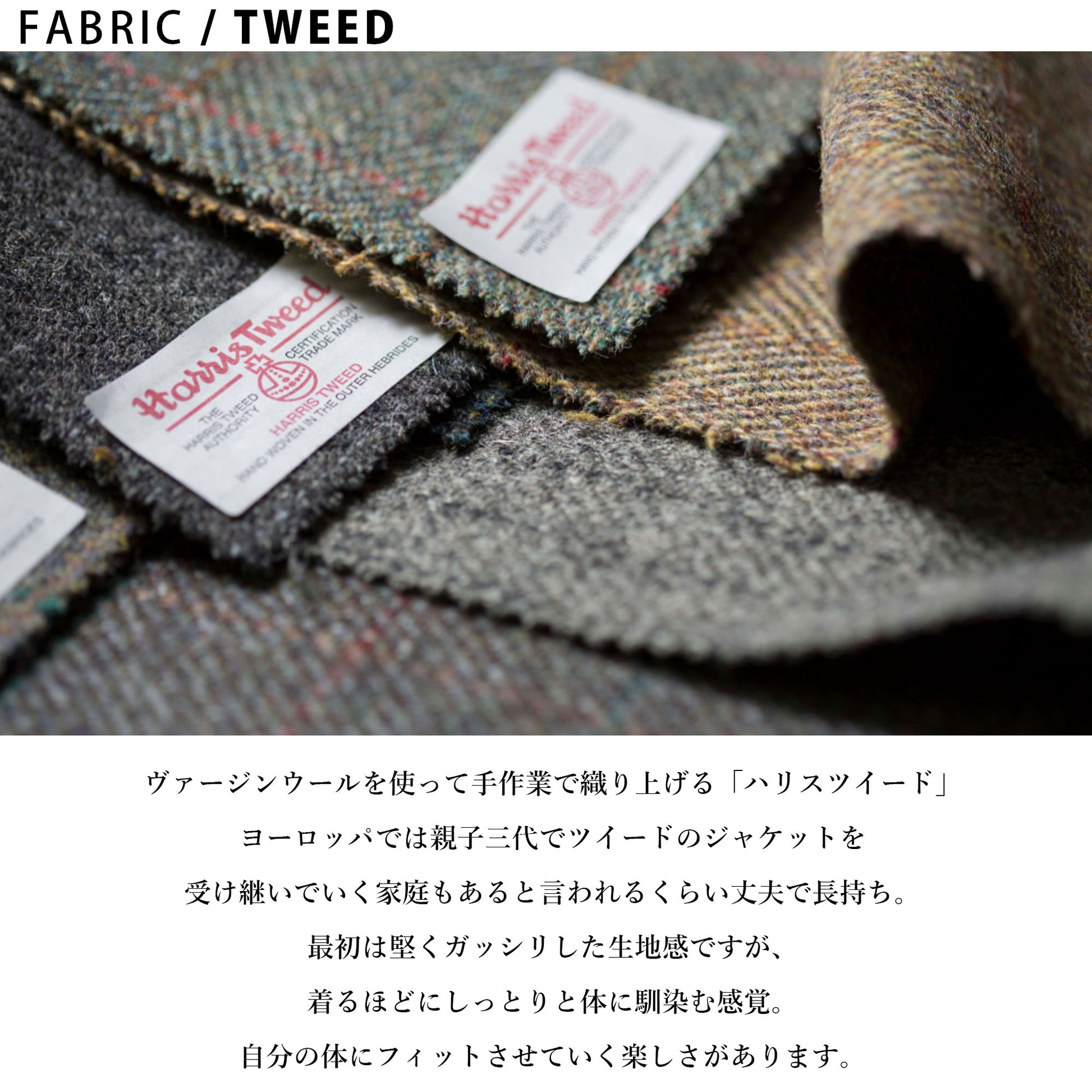 熟練の職人によって、一枚一枚手作業で織り込まれる生地は、厳しい基準をクリアしたもののみにオーブの商標が与えられ、初めてハリスツイードを名乗ることができるのです。