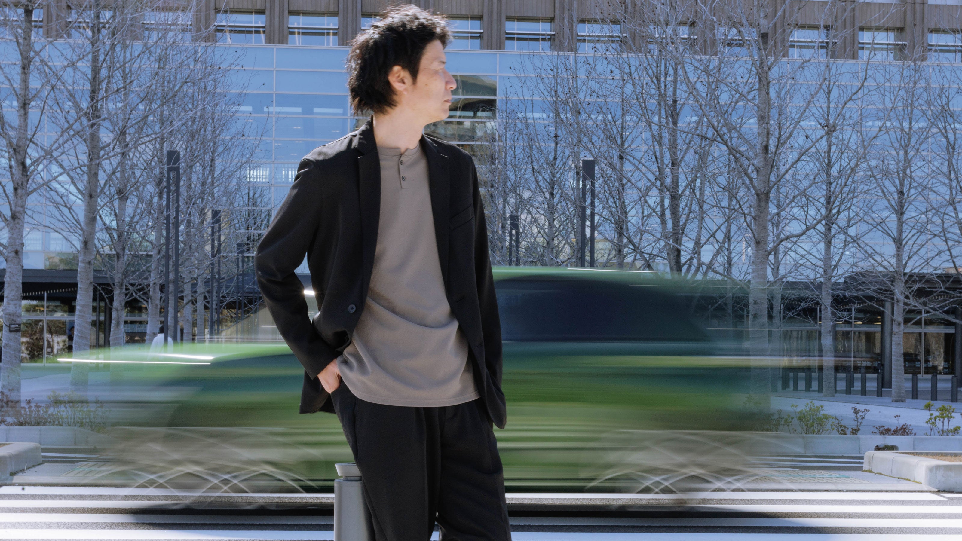 最初は堅くがっしりした生地感ですが、着るほどにしっとりと体に馴染む感覚。自分の体にフィットさせていく楽しさがあります。