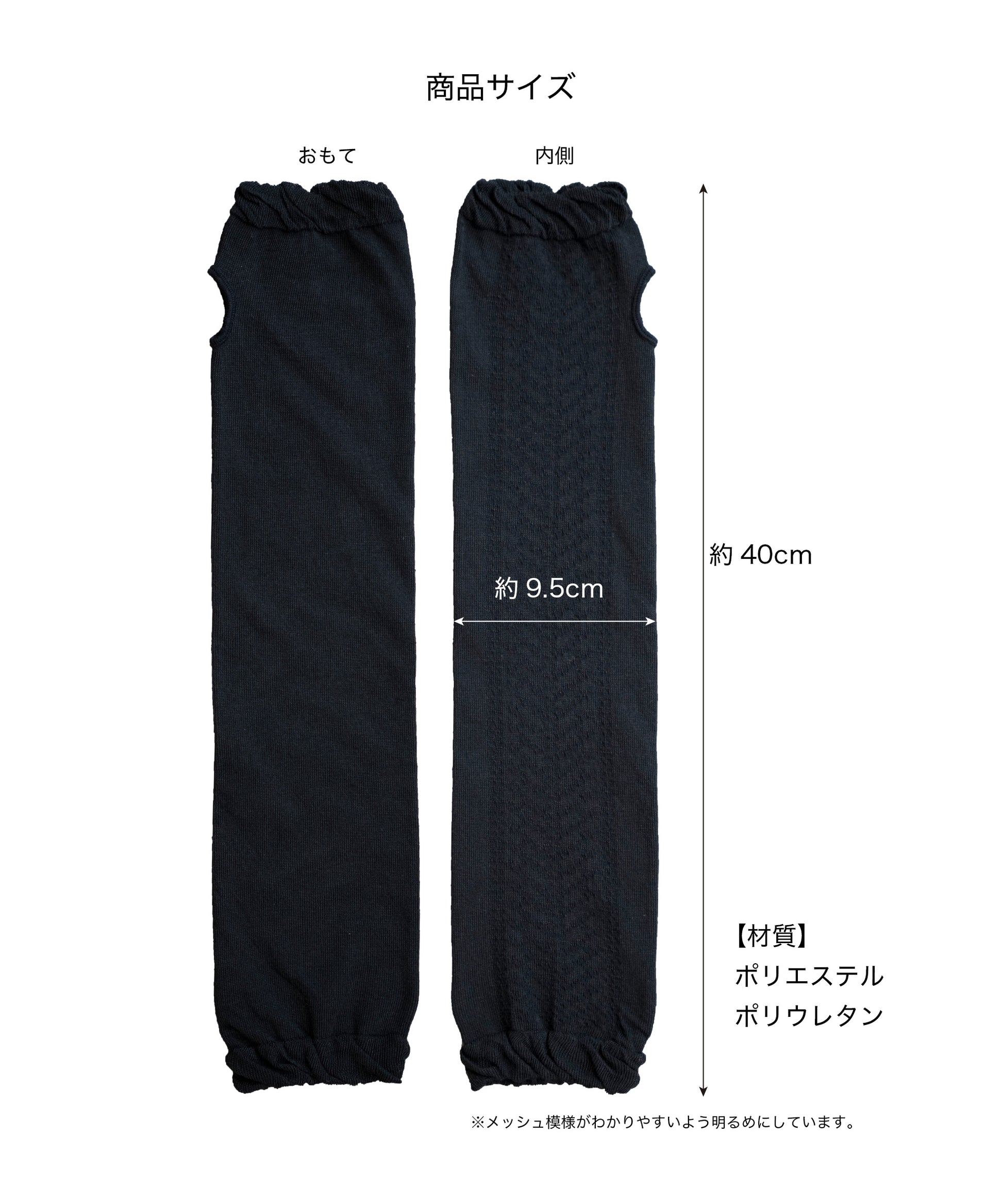 二の腕部分と指先部分にはゴム仕様でずり落ちが防止できます。