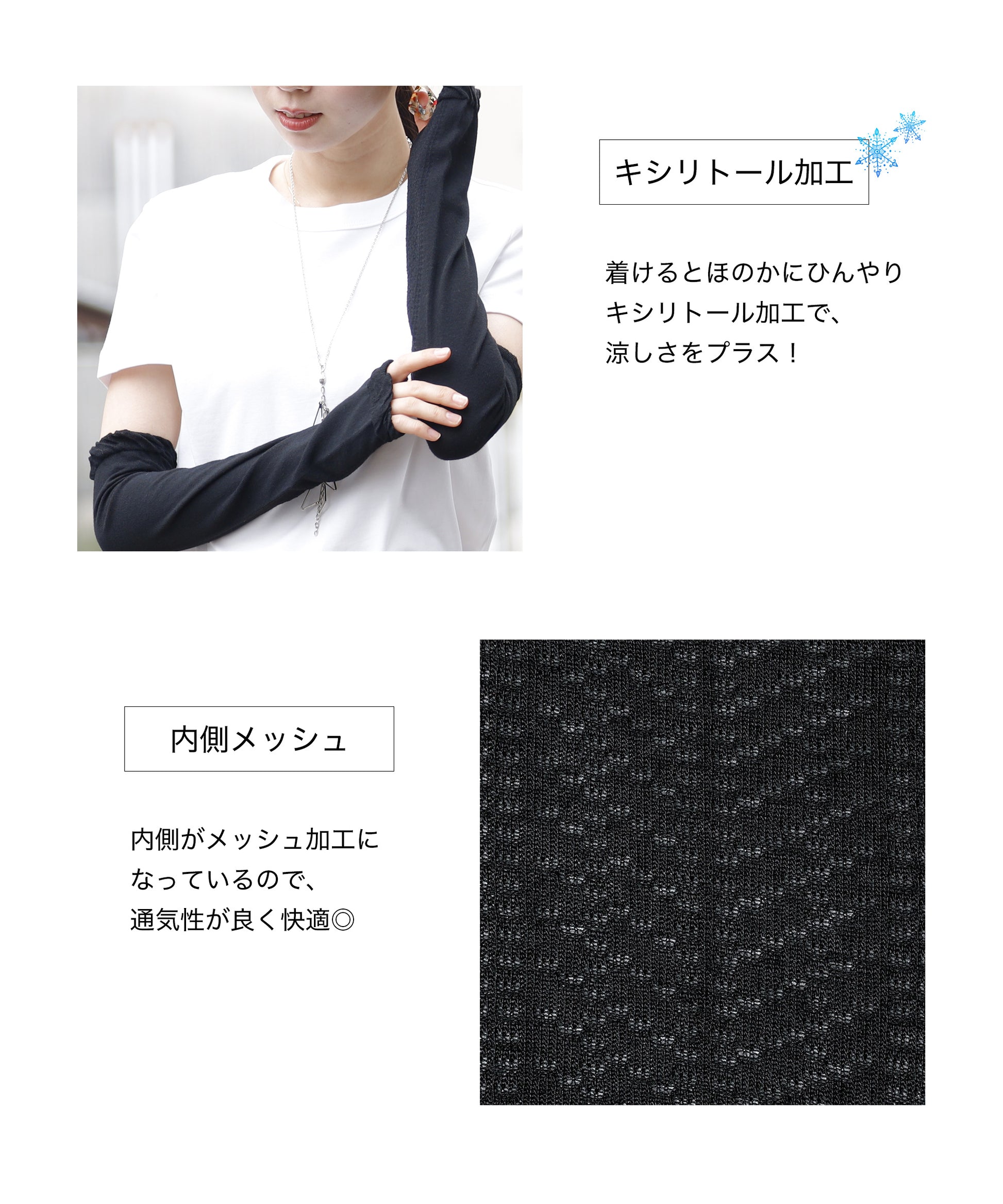 着けるとひんやりキシリトール加工で、涼しさをプラス。