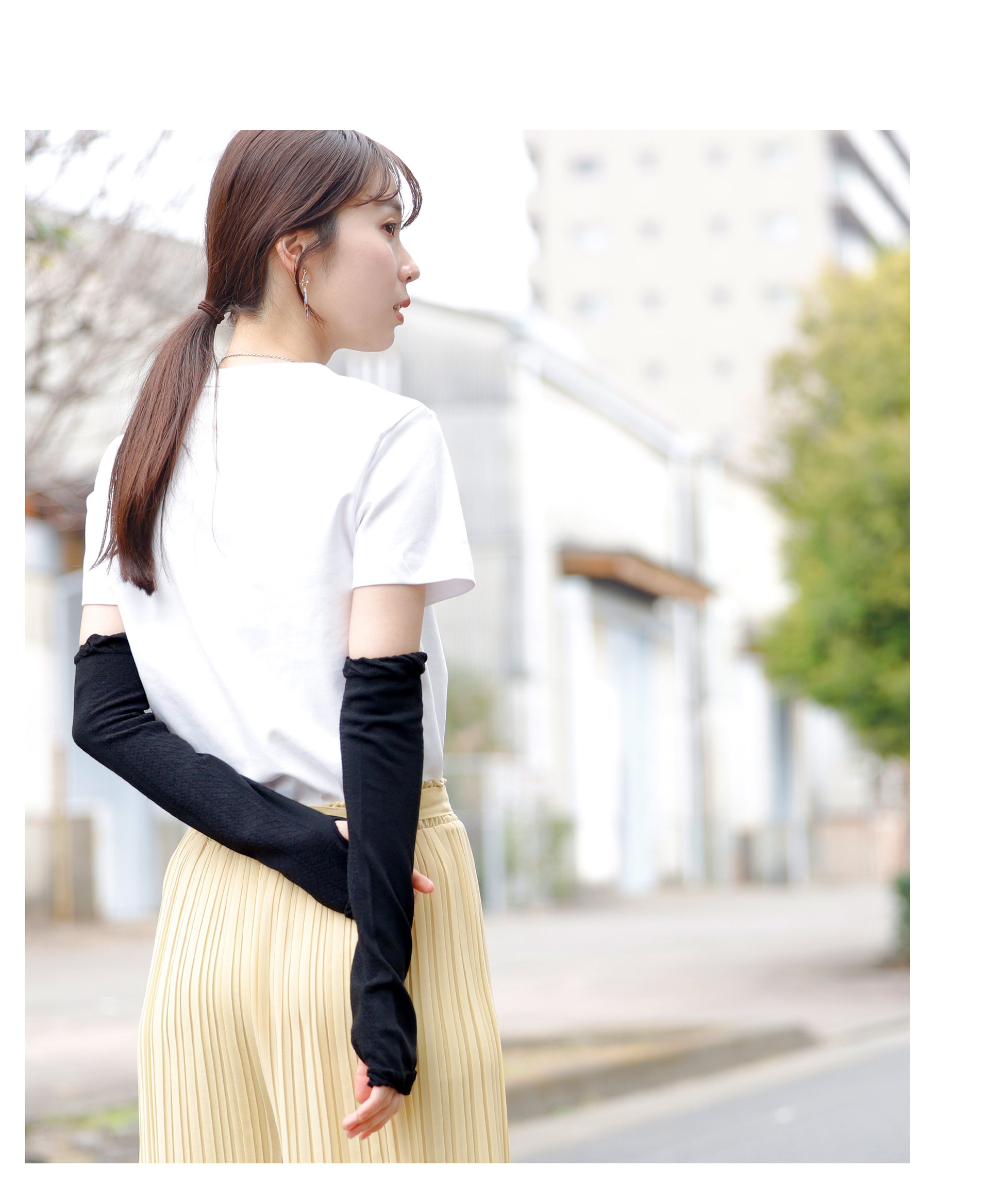手の甲までしっかりとカバーできるので、日焼けや虫刺されから手首までしっかりと守ってます。
