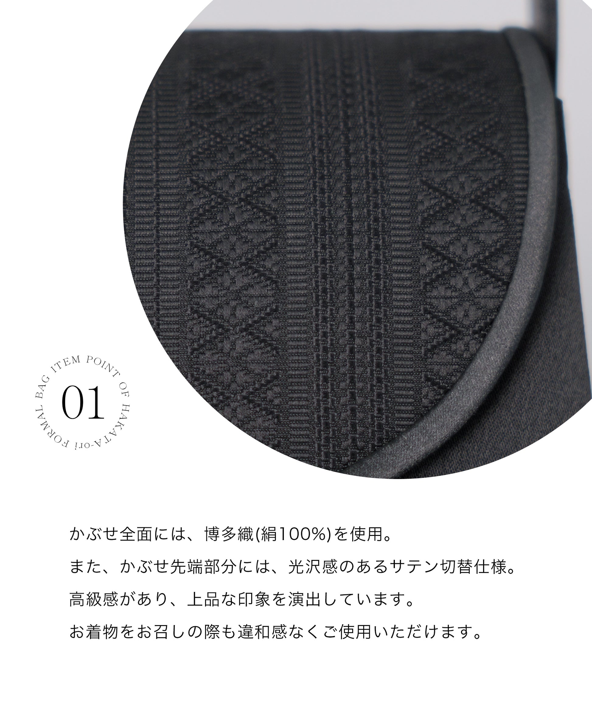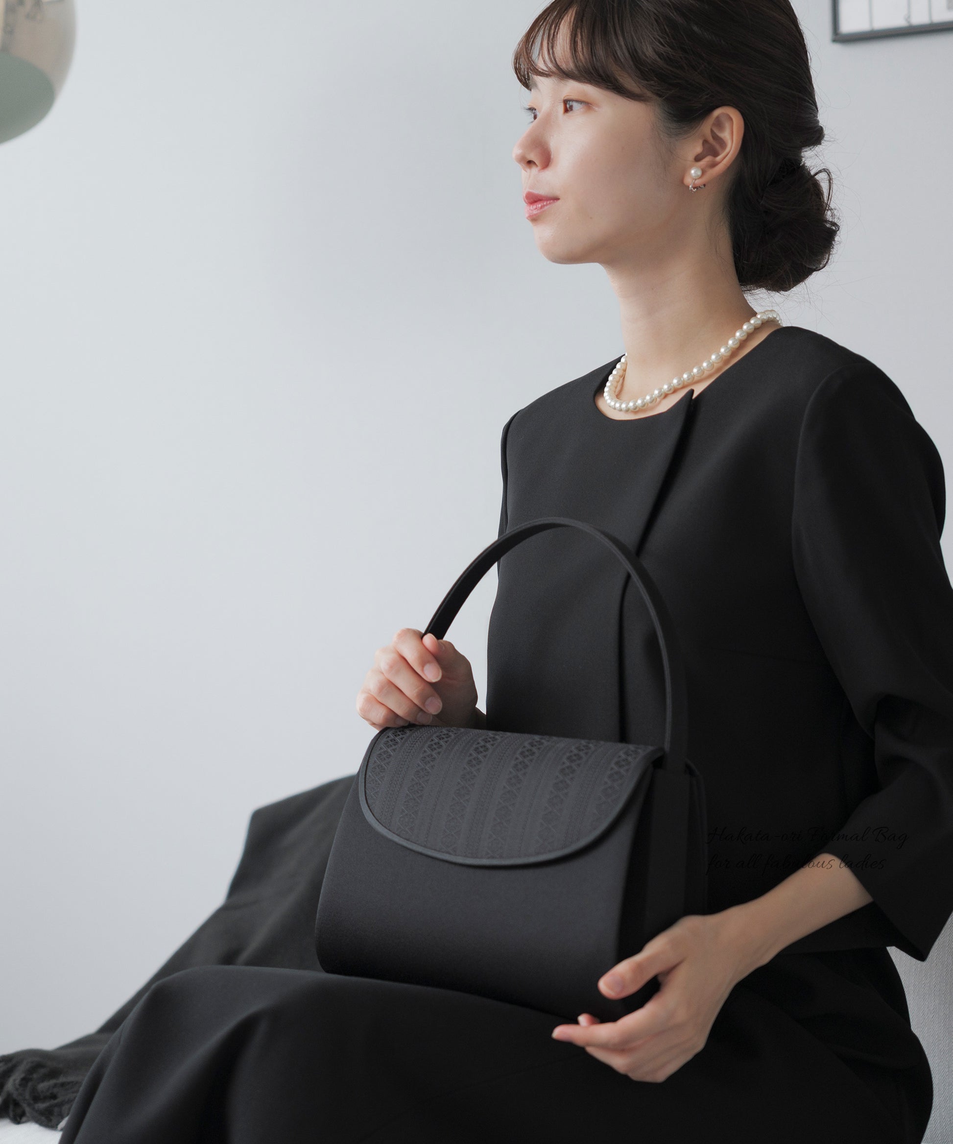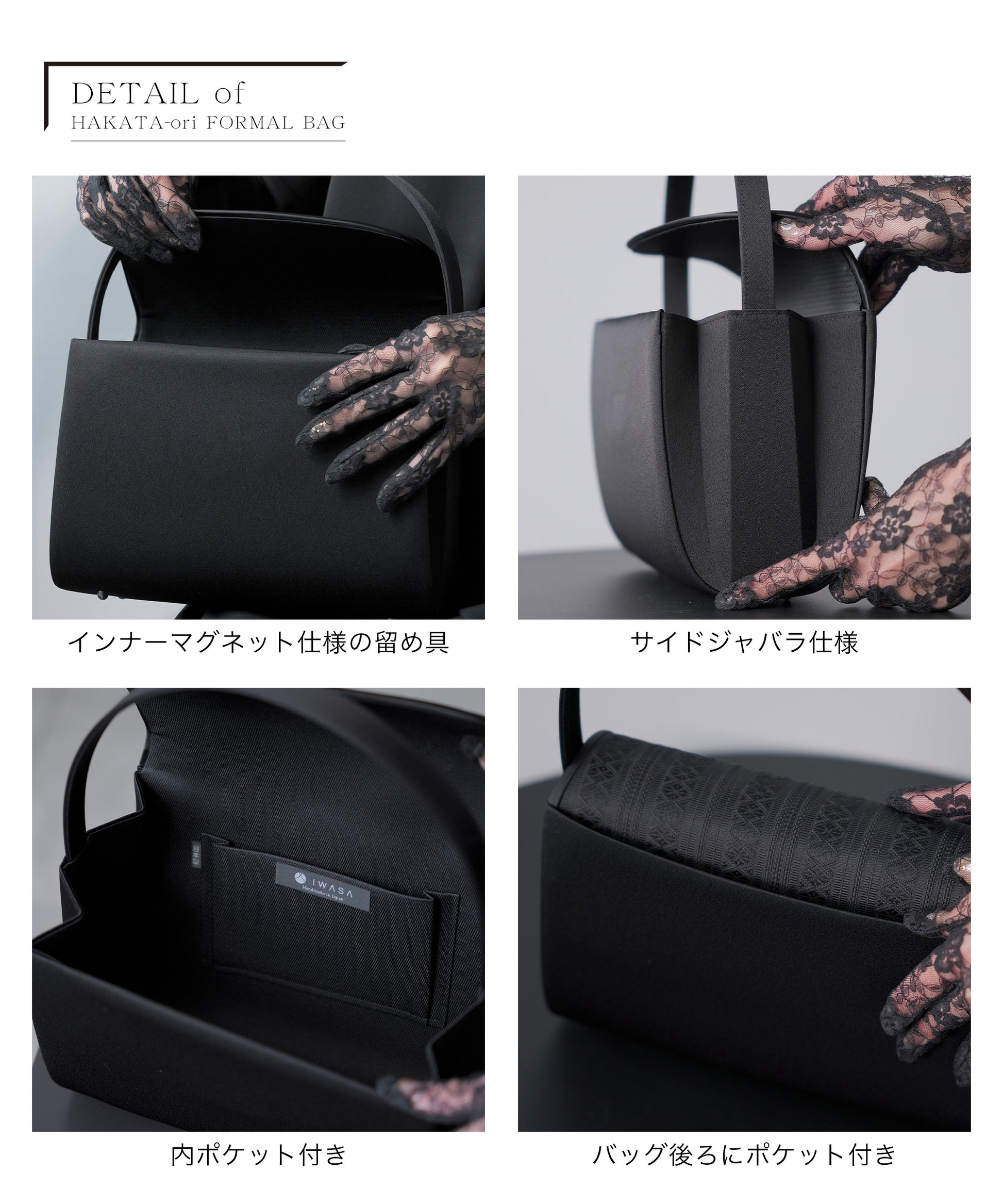 700年以上の歴史ある「博多織」を取り入れたフォーマルバッグ。