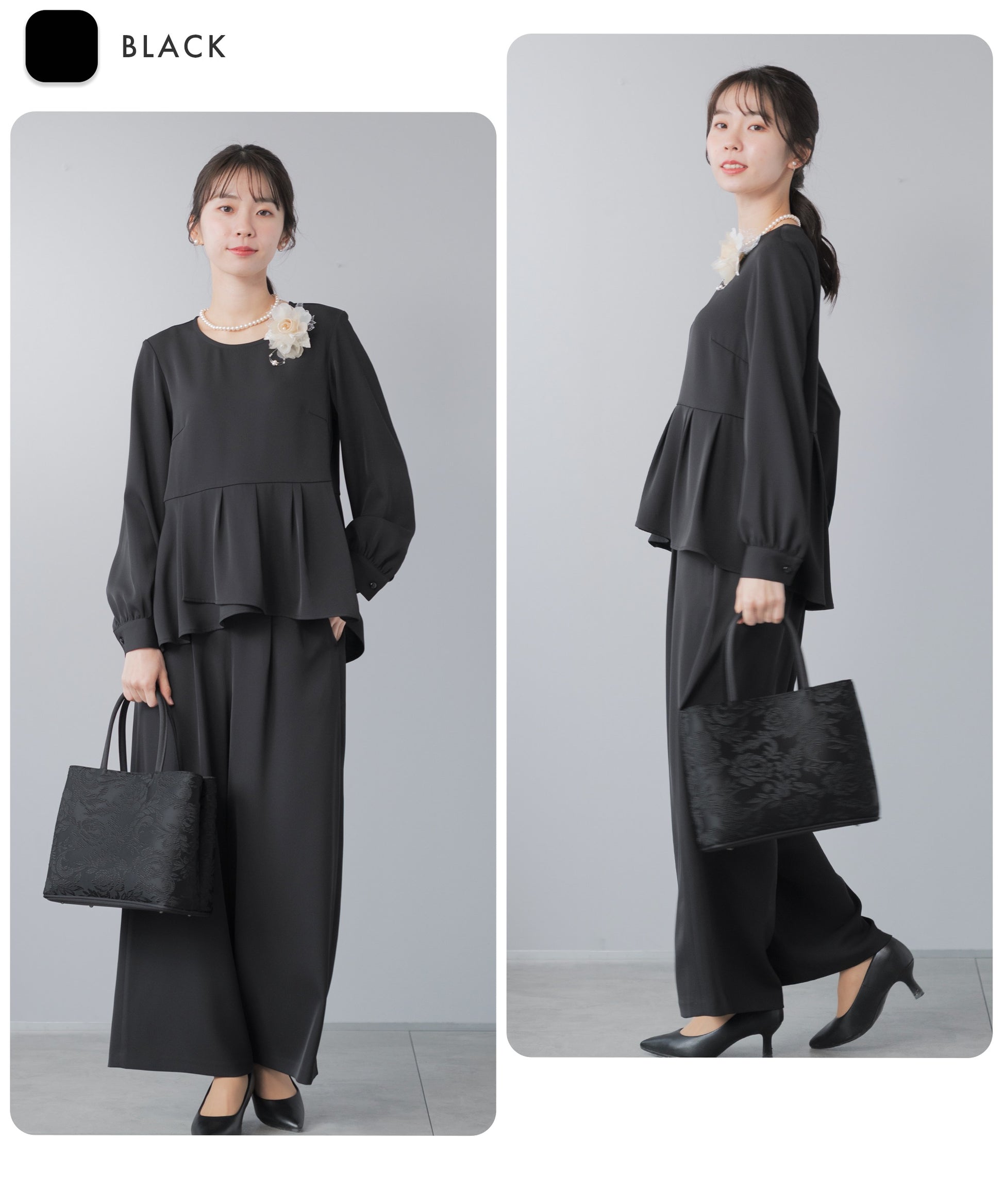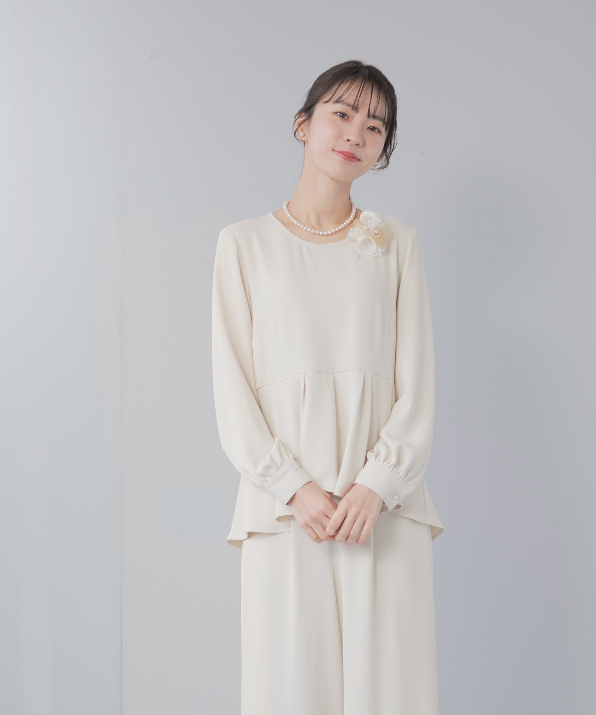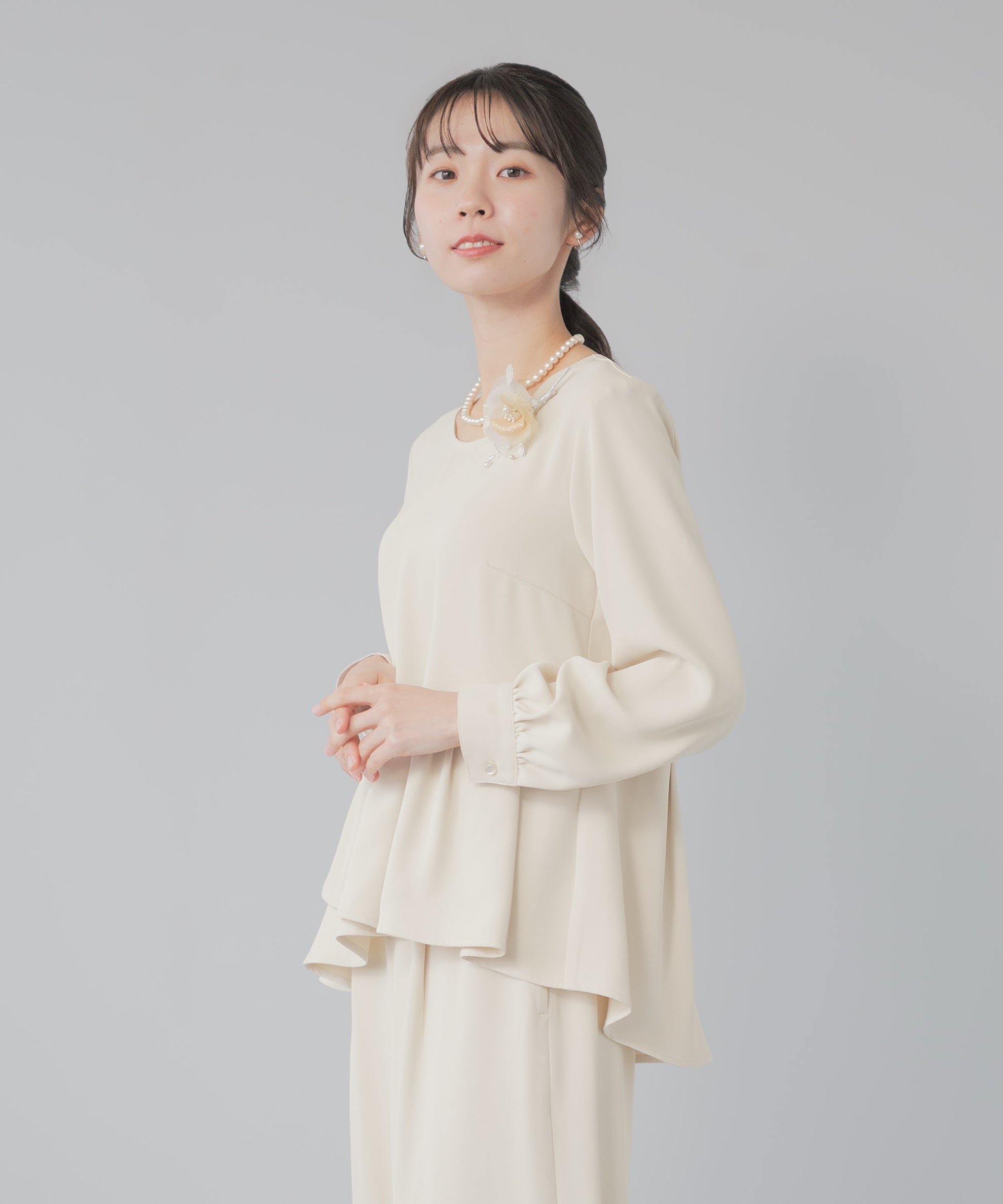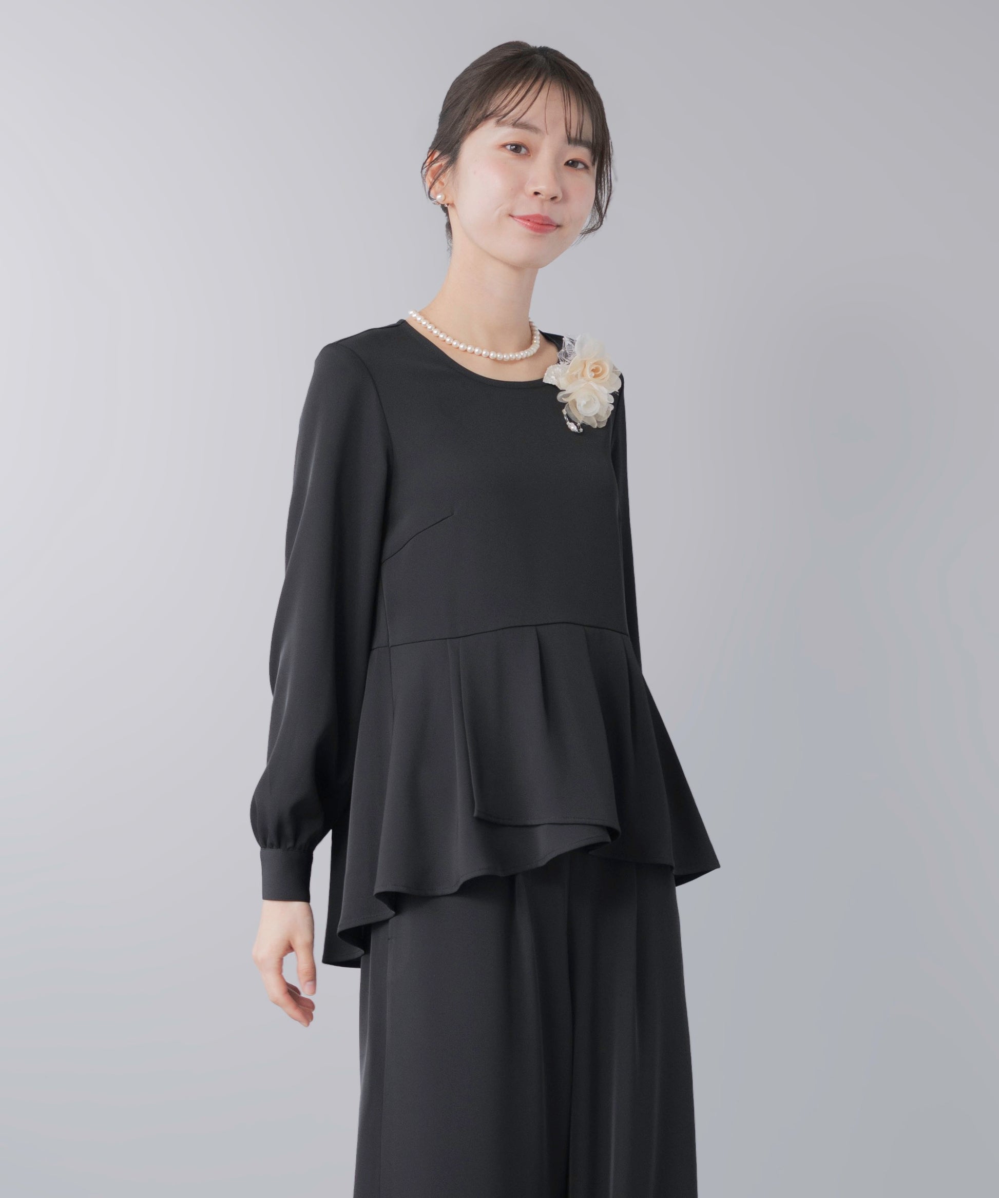 ペプラムブラウス×ワイドパンツ セレモニースーツ