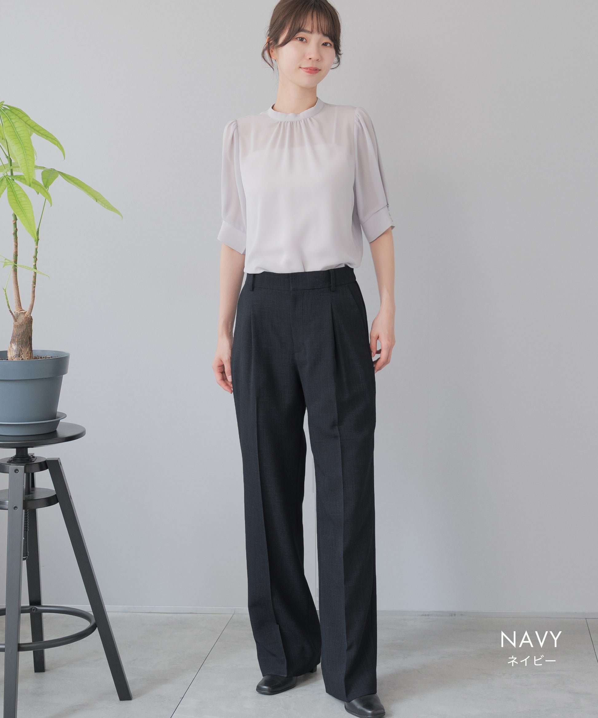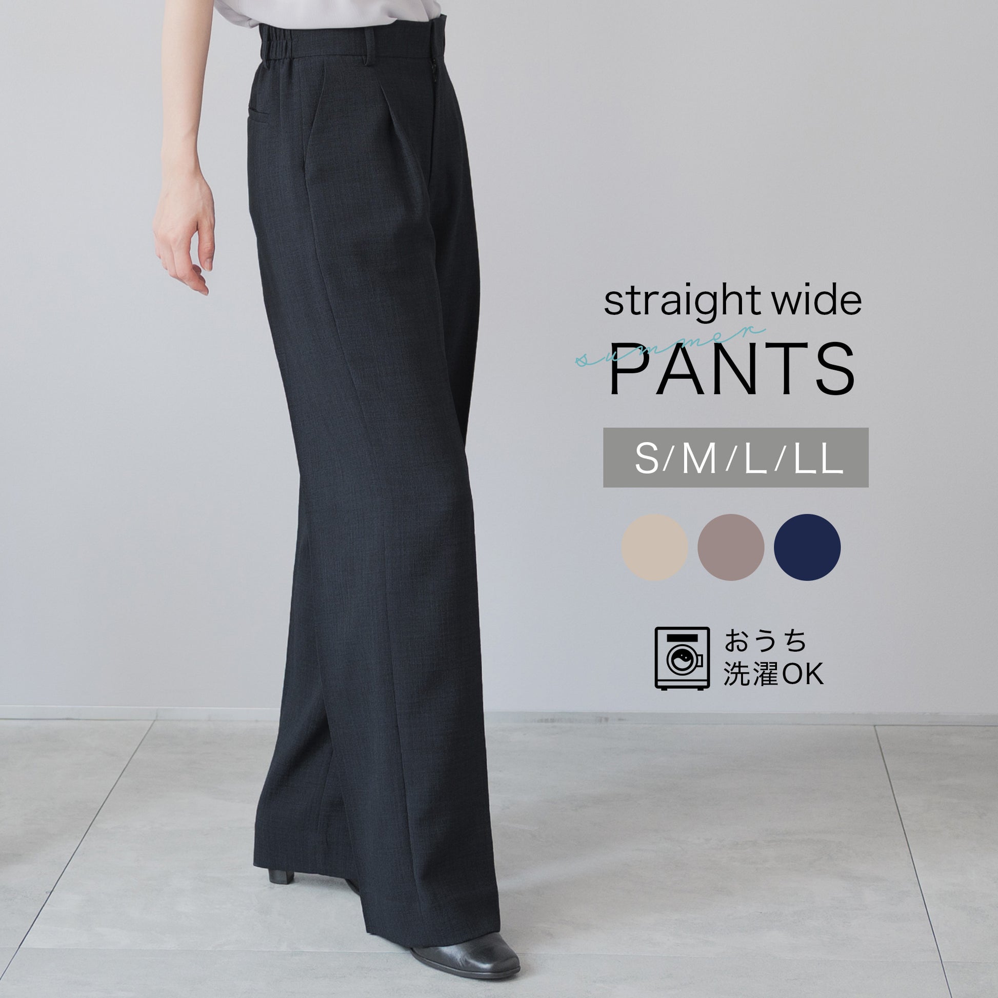 脚を長く見せるすっきりとしたセンタープレス入り&美しいストレートワイドシルエットが高見え効果をプラス。