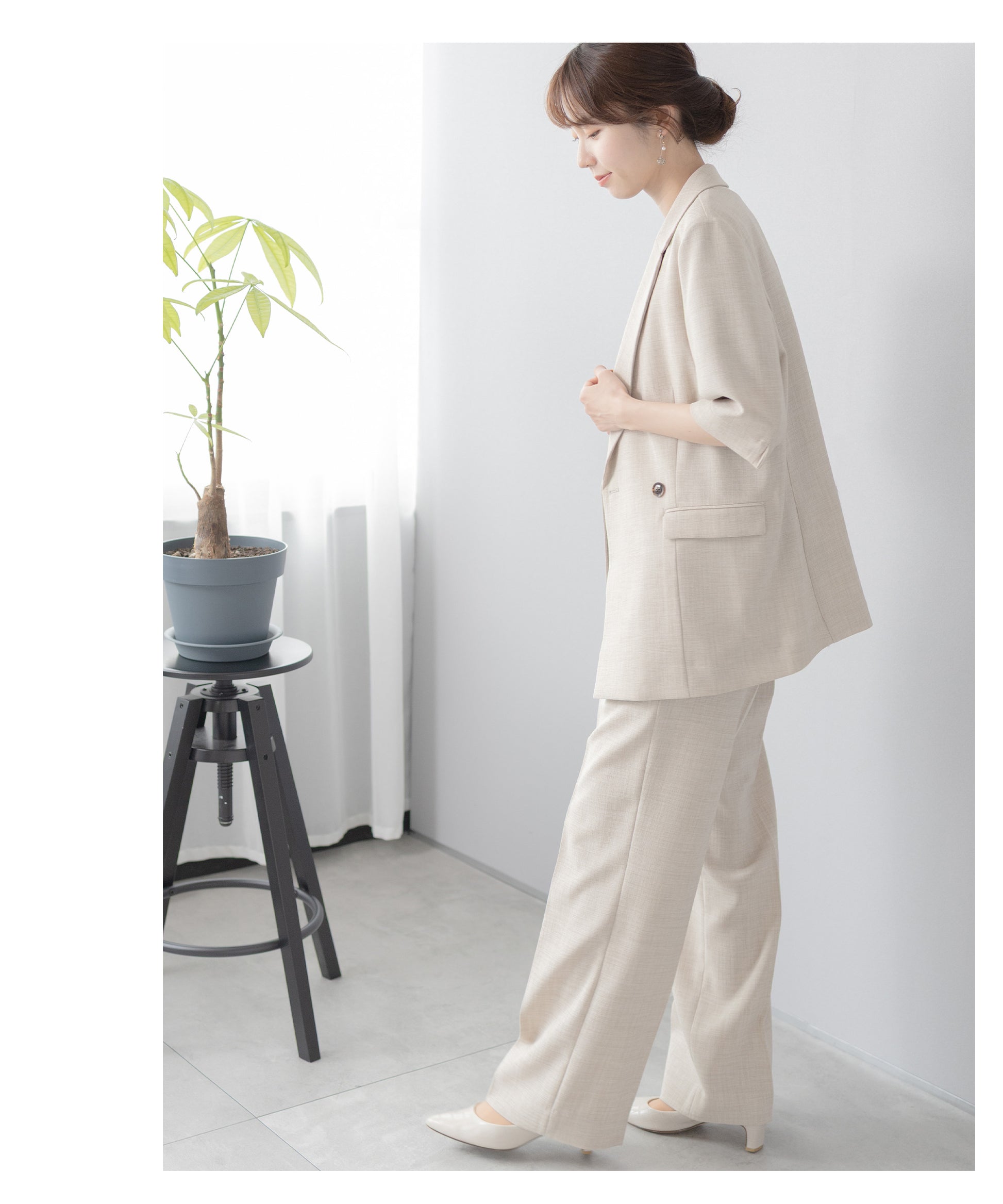 リネンライク素材で涼しく、真夏のコーディネートが快適に♪