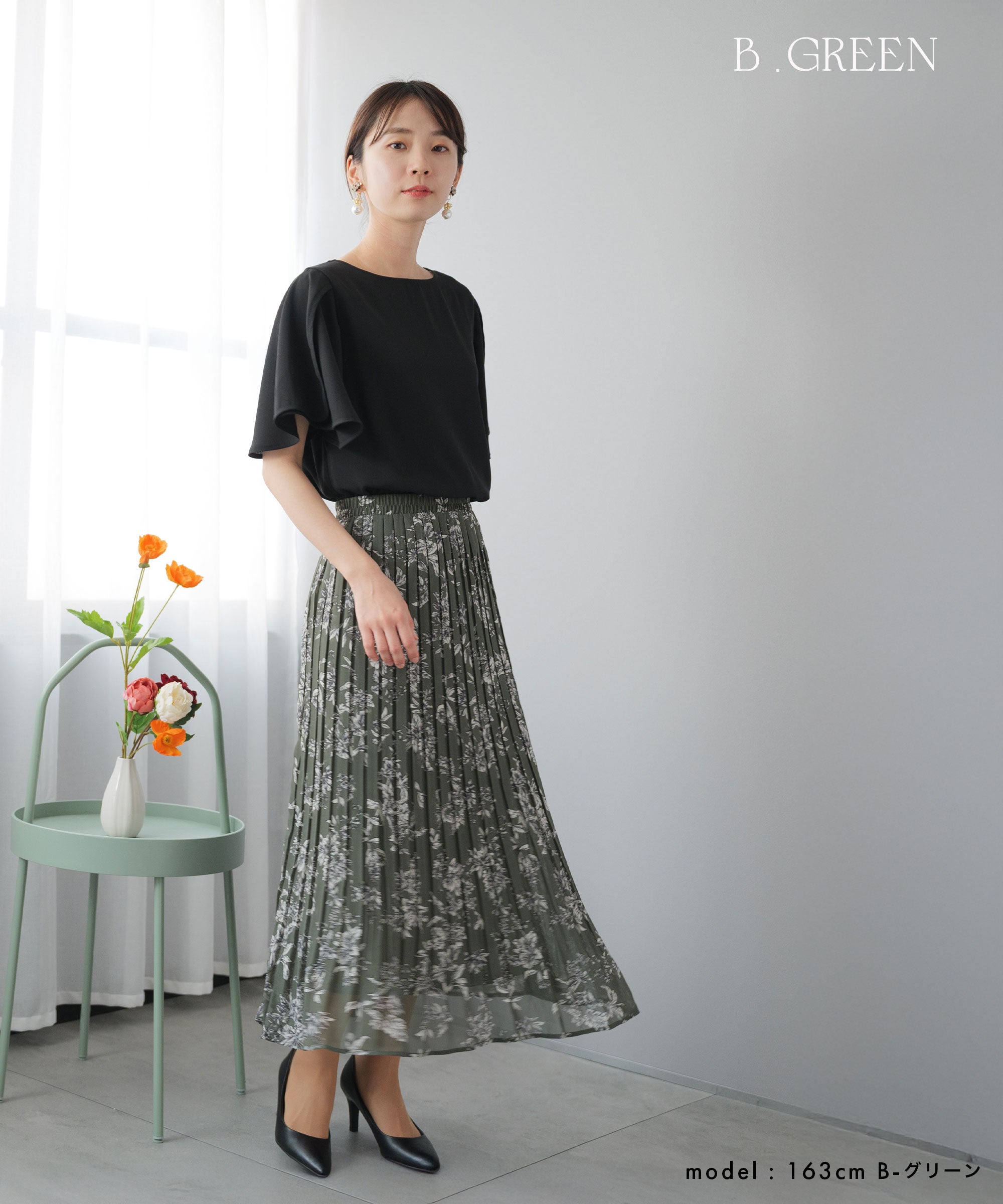 花柄×プリーツ。甘すぎない大人かわいいロングスカート