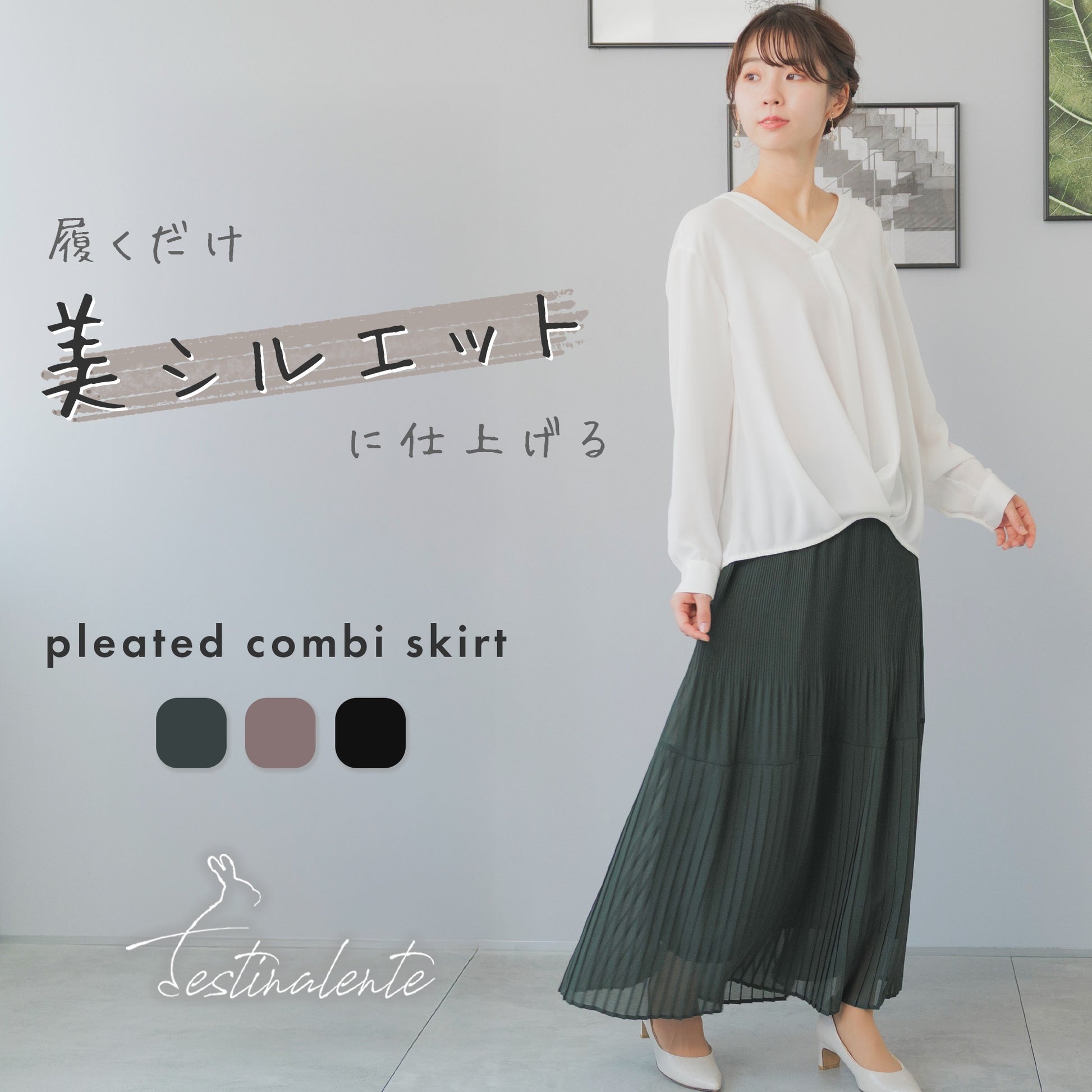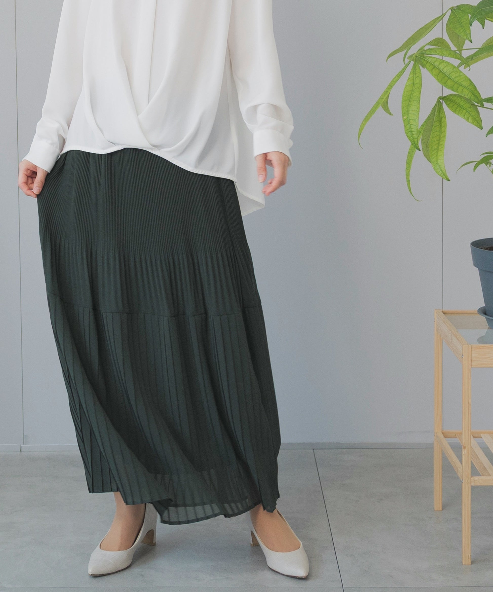 履くだけで上品に仕上げるプリーツ コンビ ロングスカート
