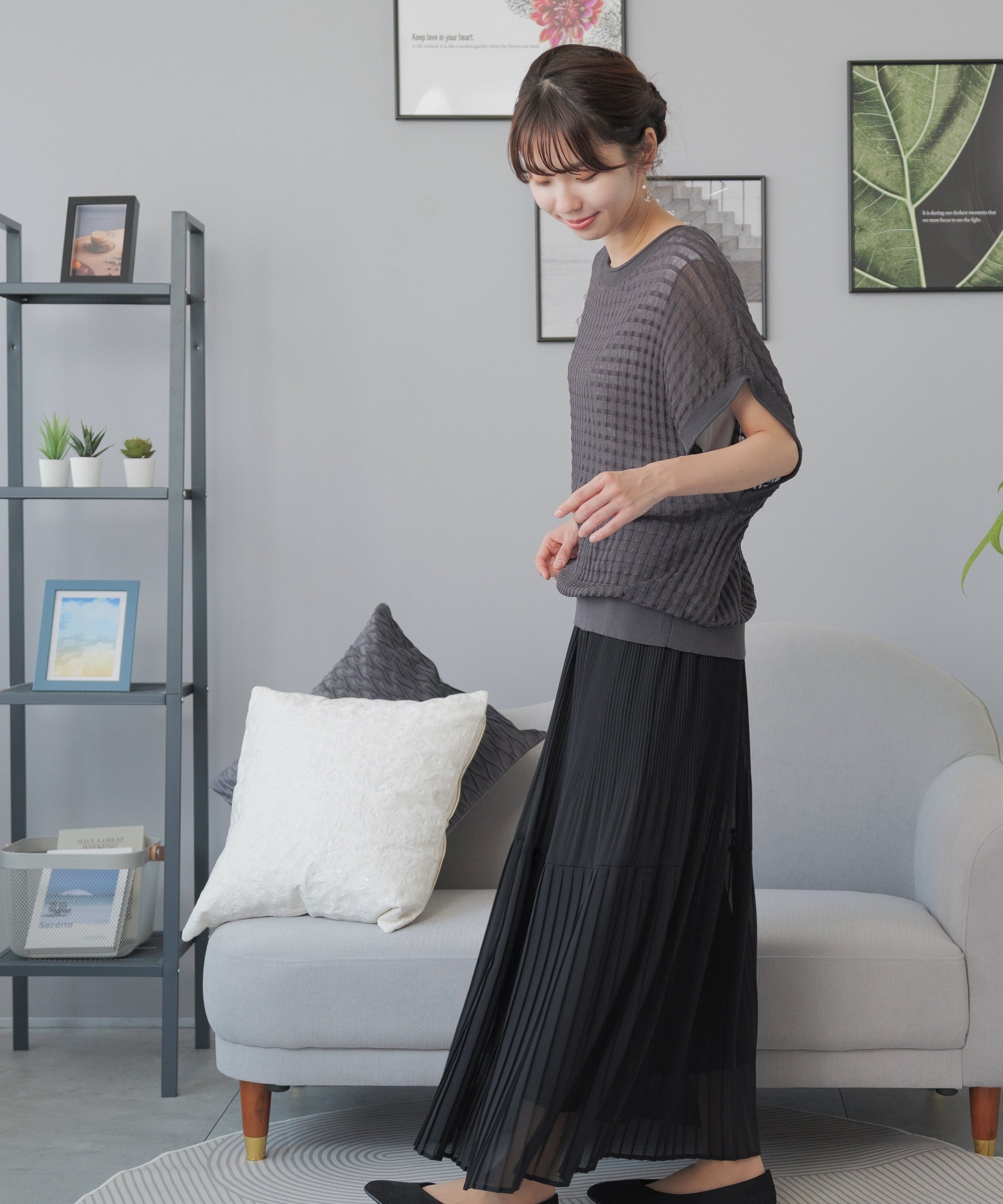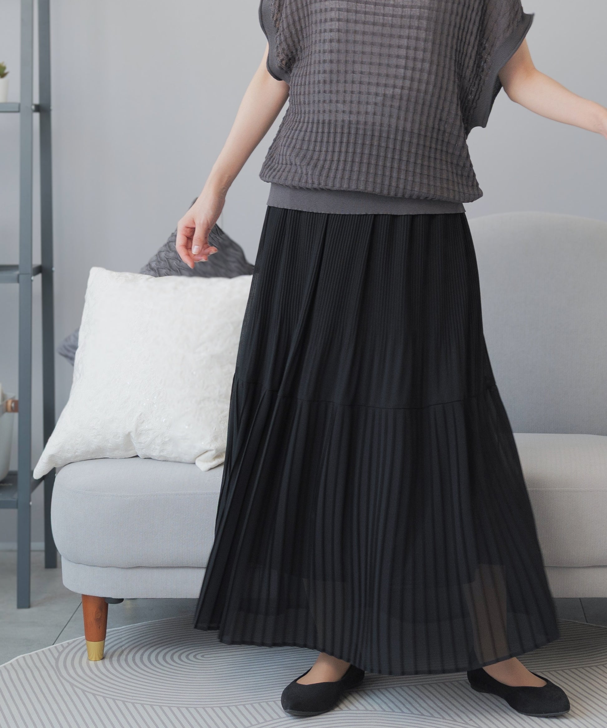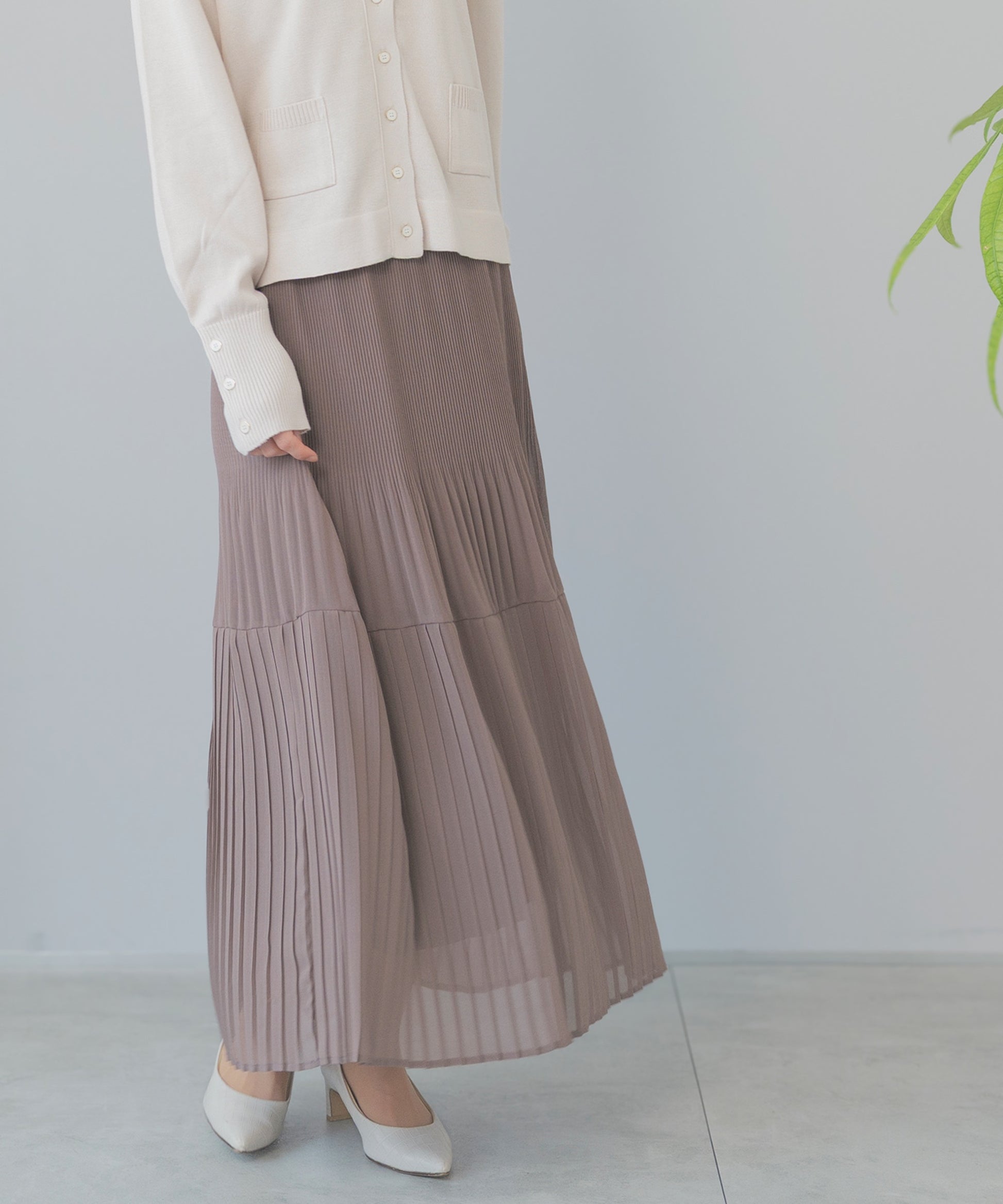 体型カバーを叶える細プリーツ。着るだけで華奢見せプリーツスカート