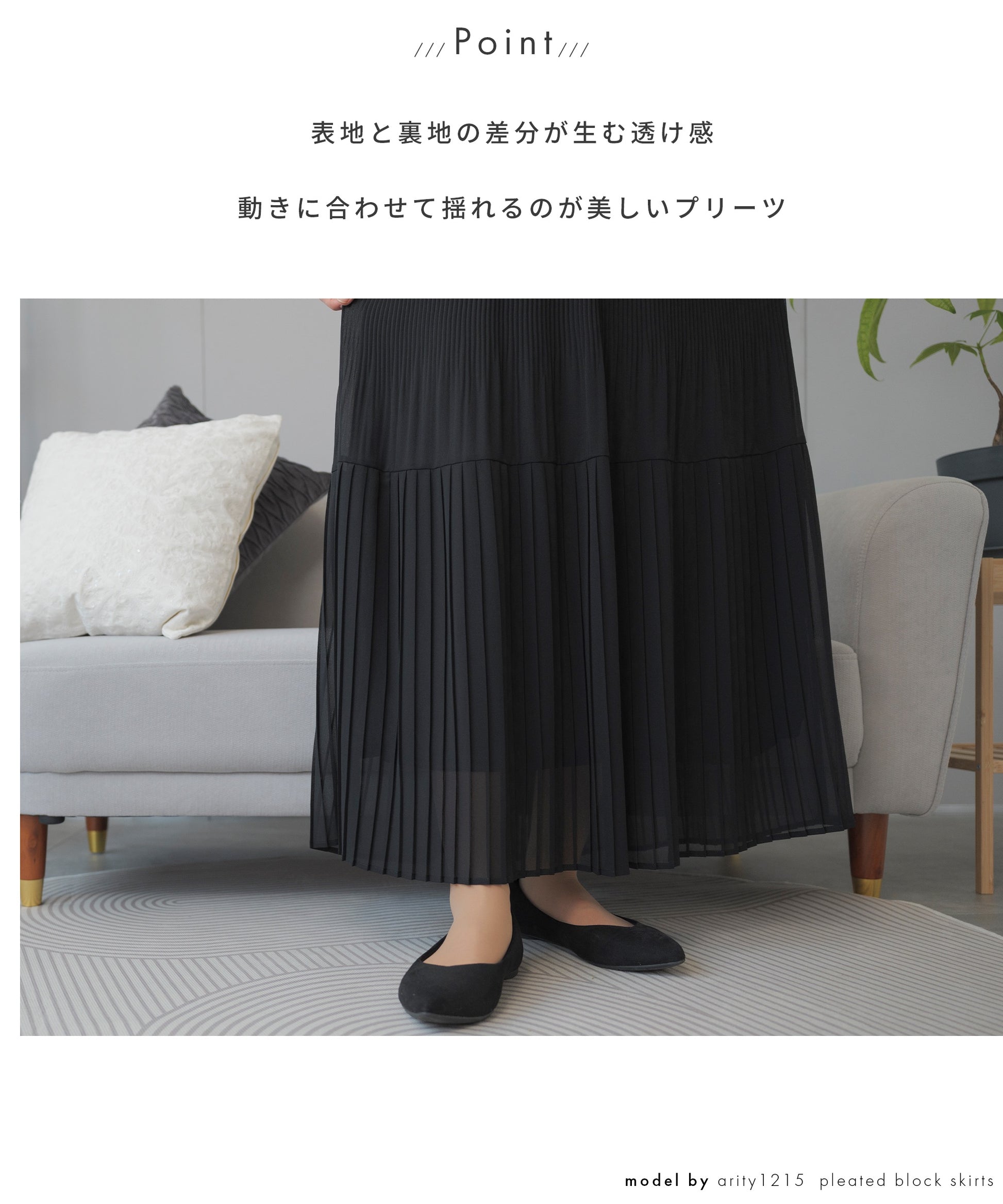 動きに合わせて揺れるのが美しいプリーツ