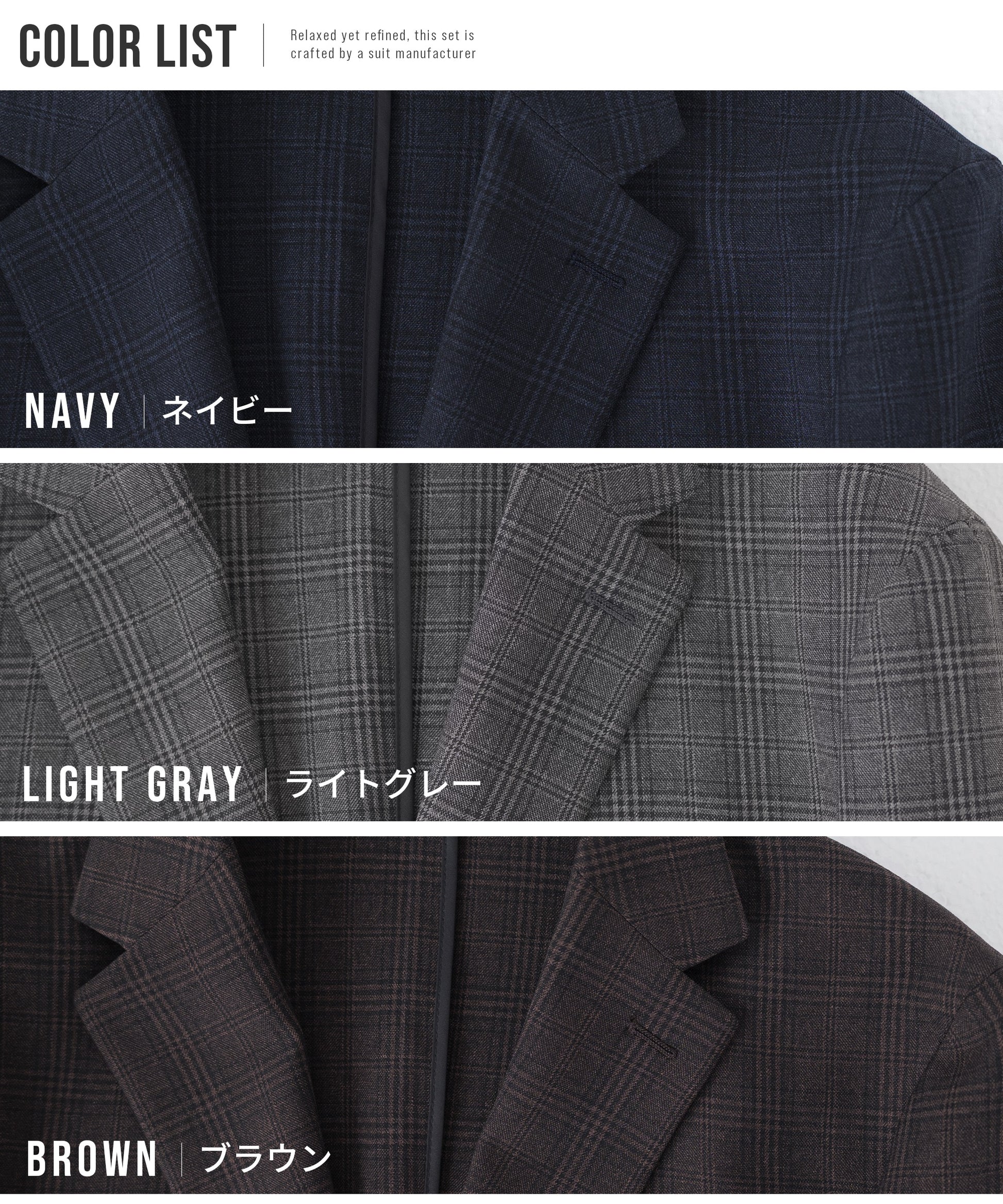 上下セットでも、ジャケットやスラックス単品でも使いやすい柄