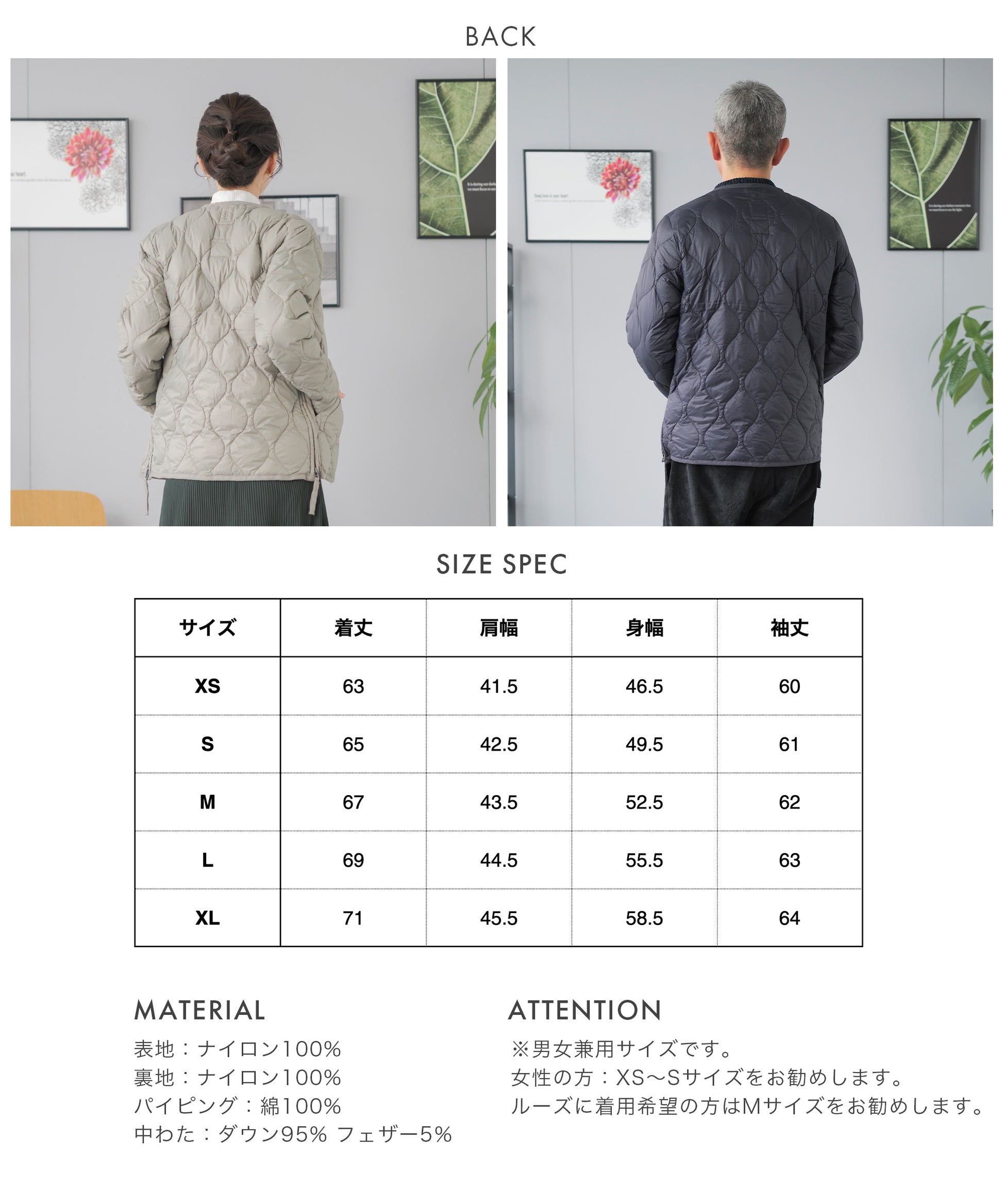 軽くて暖かく柔らかい、ミリタリーテイストのダウンウェア。