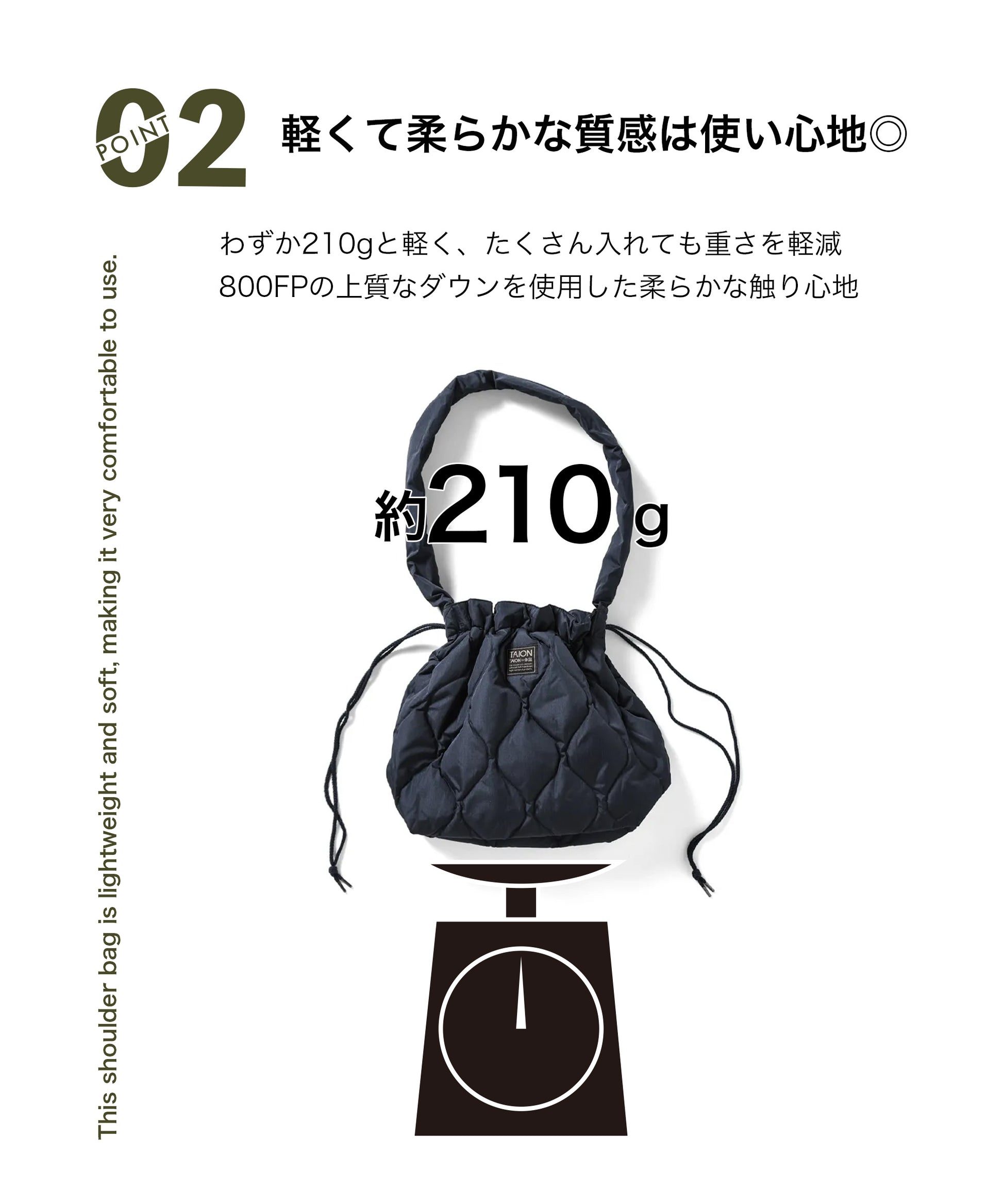 2WAYで楽しめる、大きめサイズのショルダーダウンバッグ