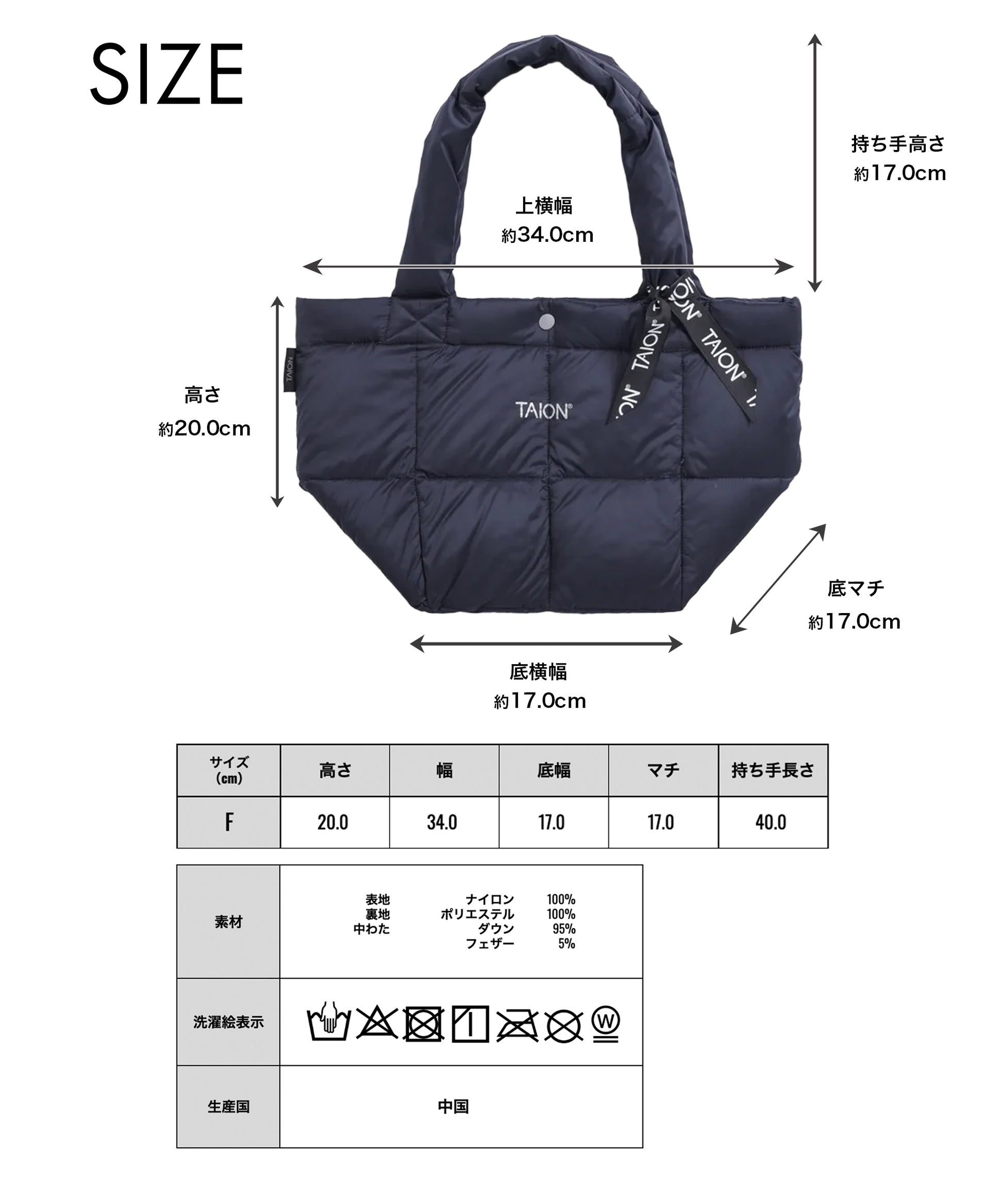 【TAION】軽くて柔らかダウントートバッグ