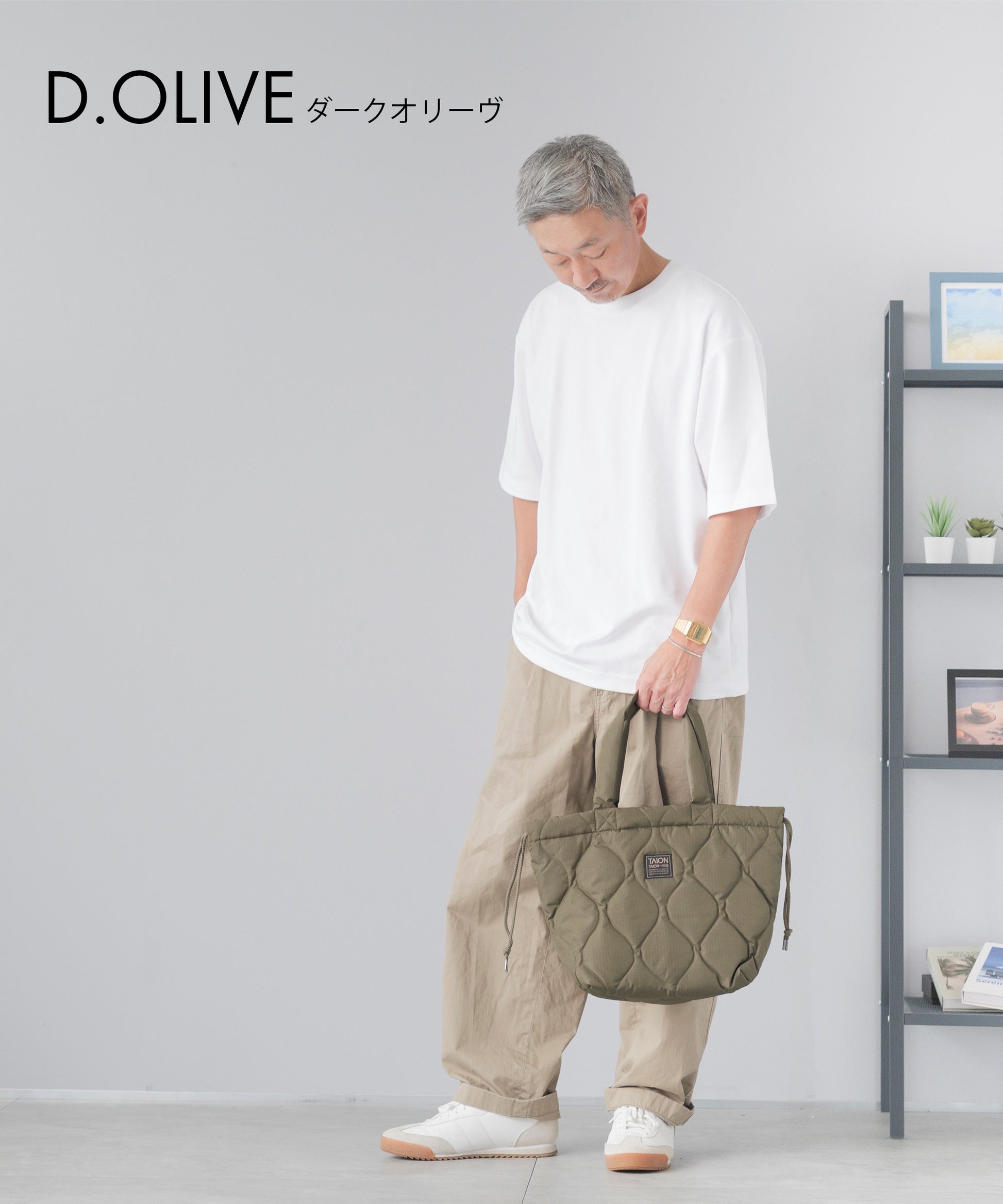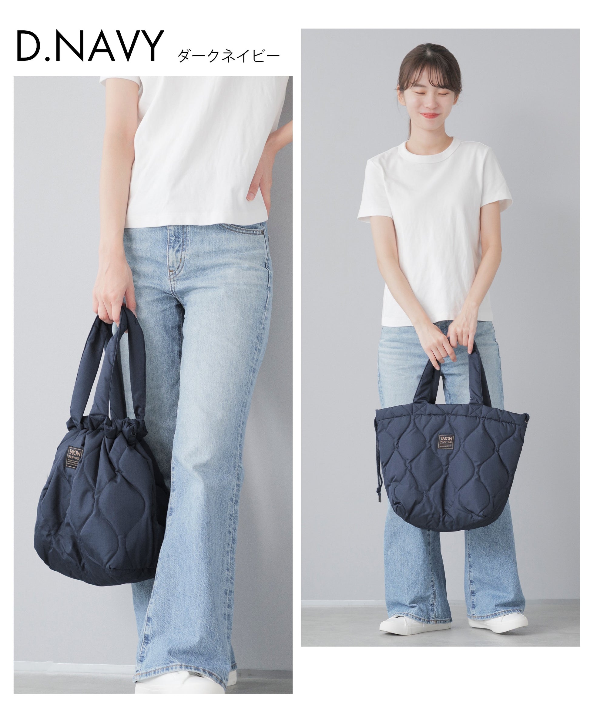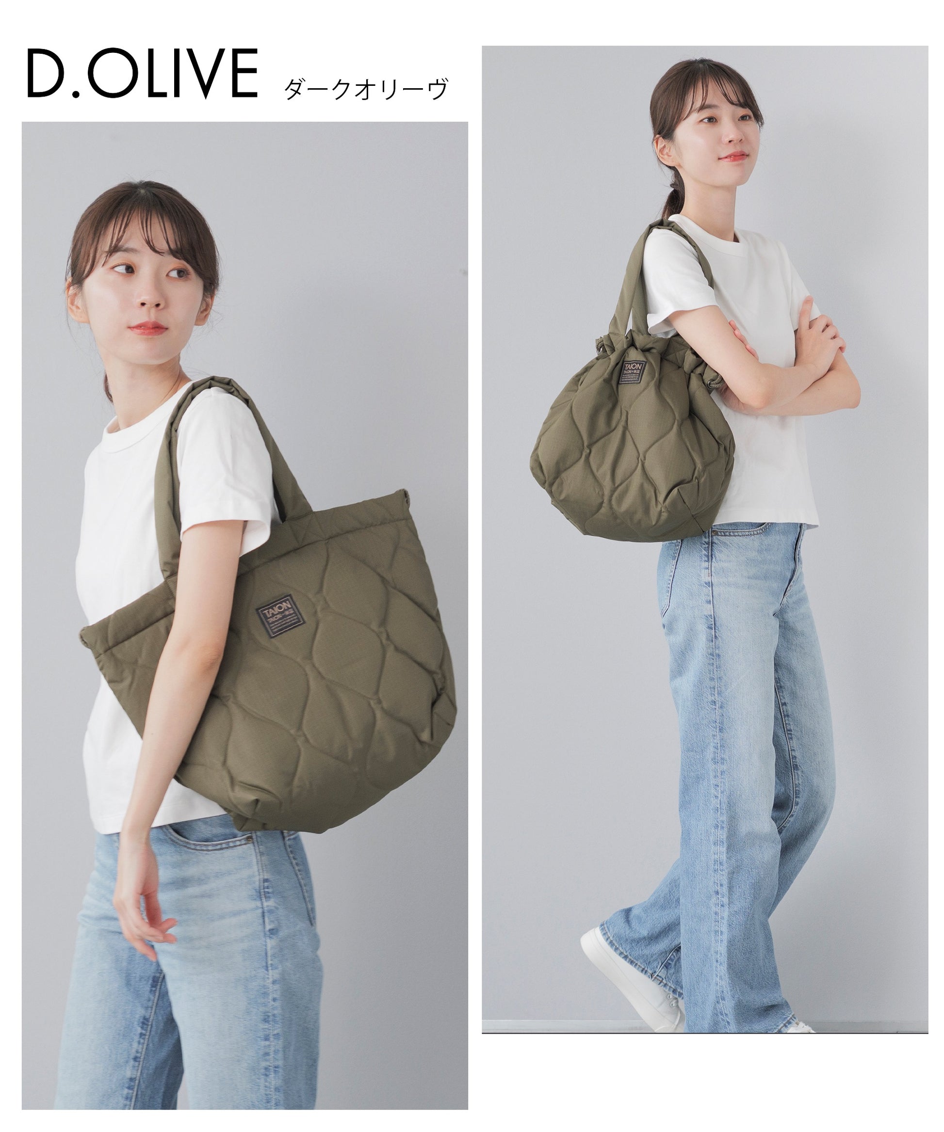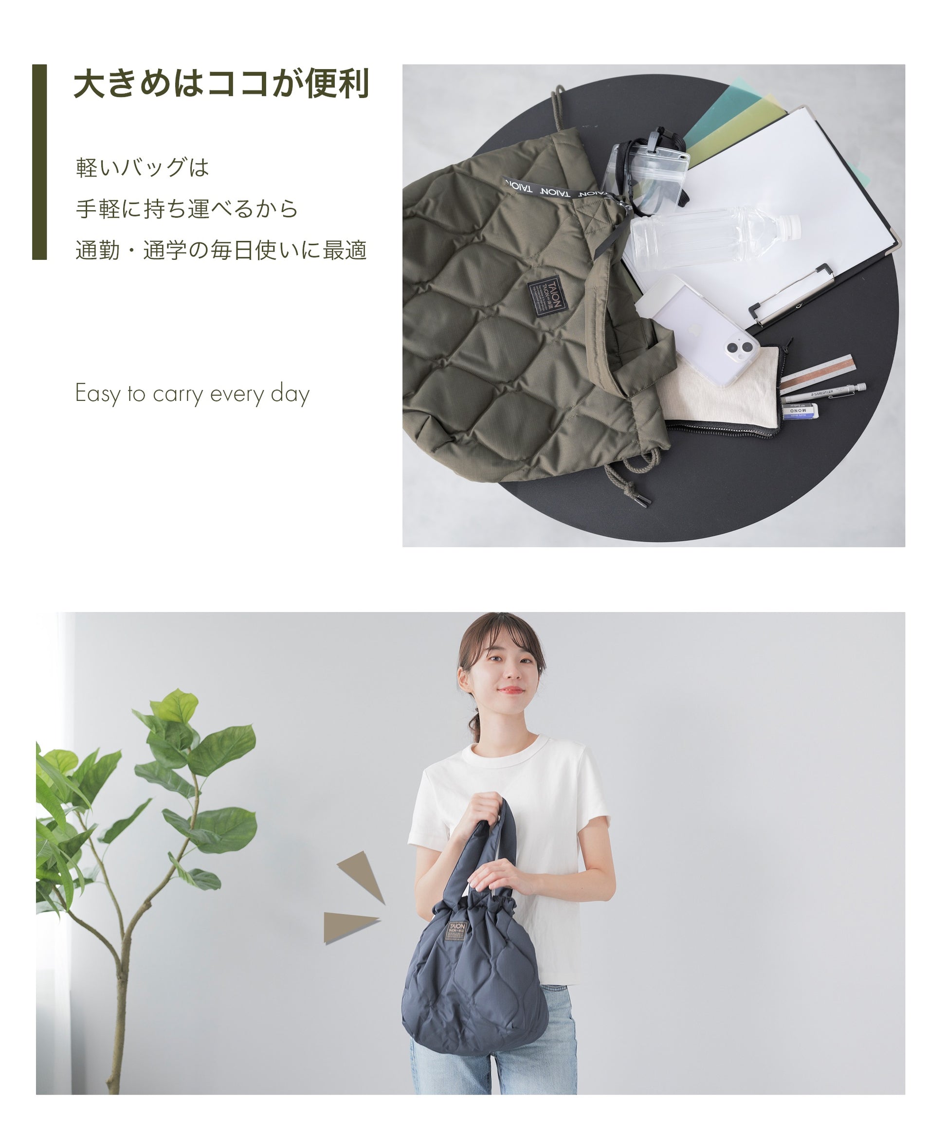 バッグ口を絞ると巾着バッグに、スタイルに合わせて使い分けできる2WAY仕様。