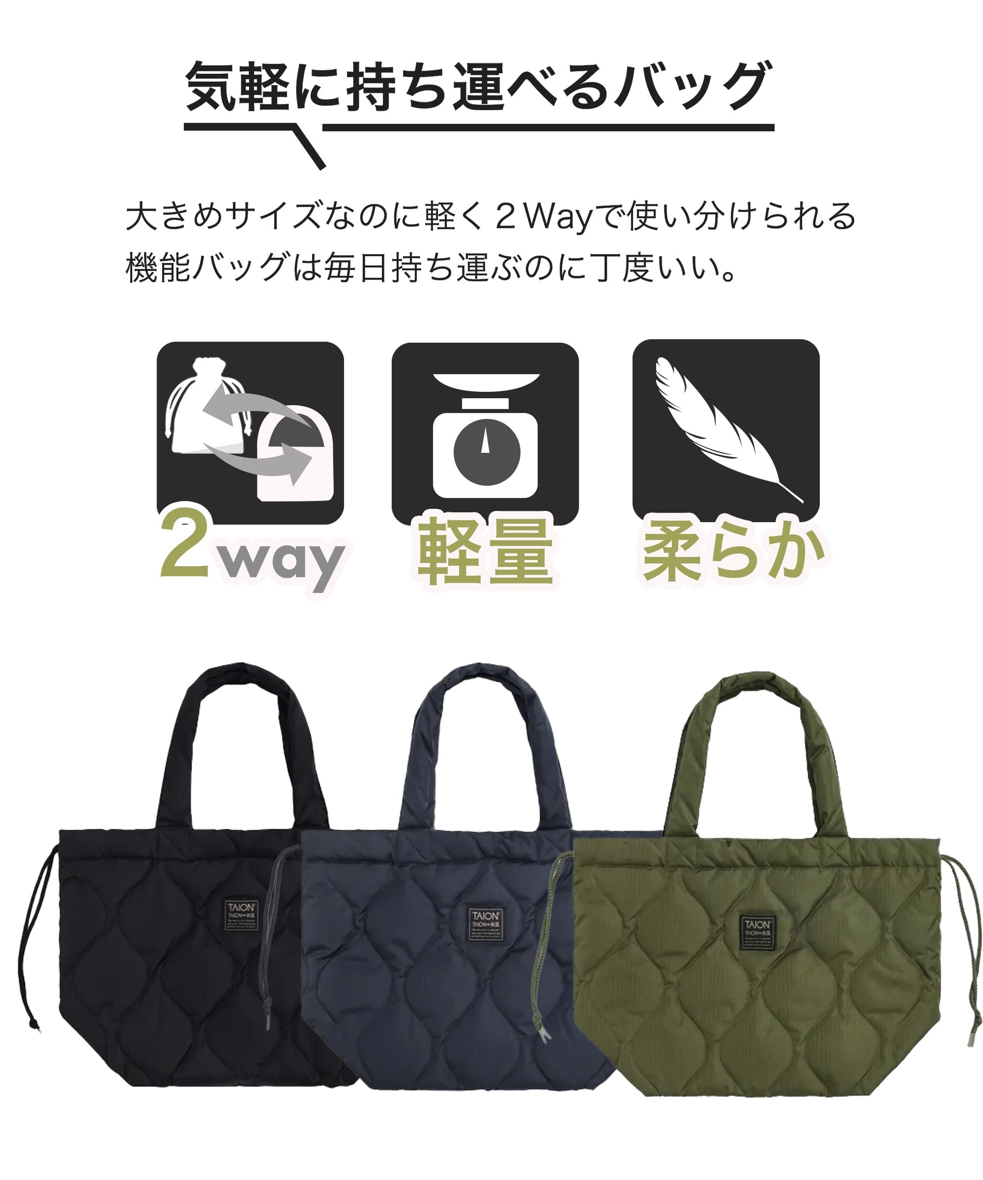 【TAION】A4サイズファイルやノートPCも入るダウントートバッグ